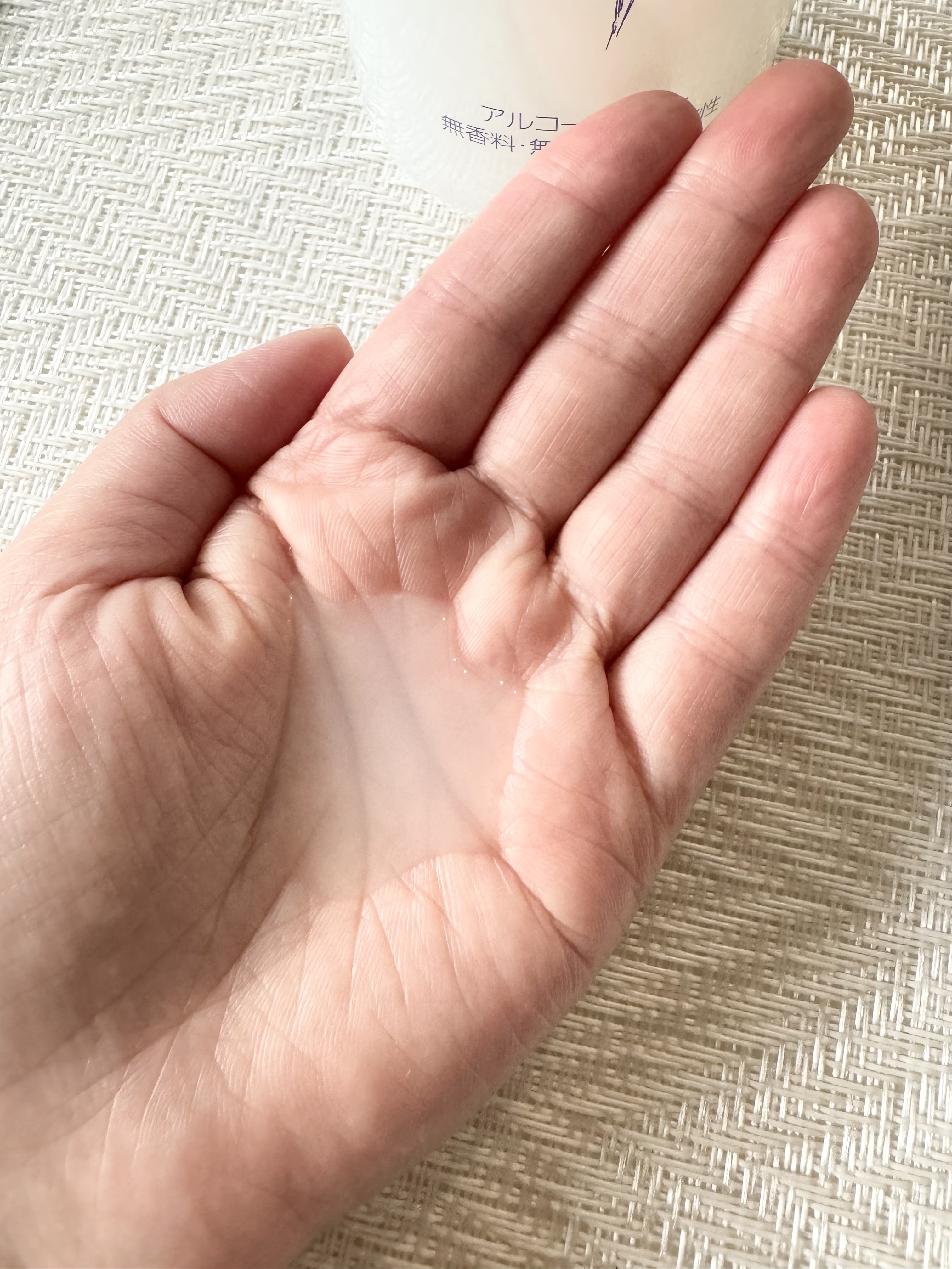 とろみのあるテクスチャですが、お肌にのせると不思議とすーっとなじんでいきます。ベタつかない、しっとりするような使用感です。とてもまろやかです。使用量の目安は500円玉大くらいだそう。ハンドプレスでじっくりなじませて、肌が手にピタッと吸い付いた...