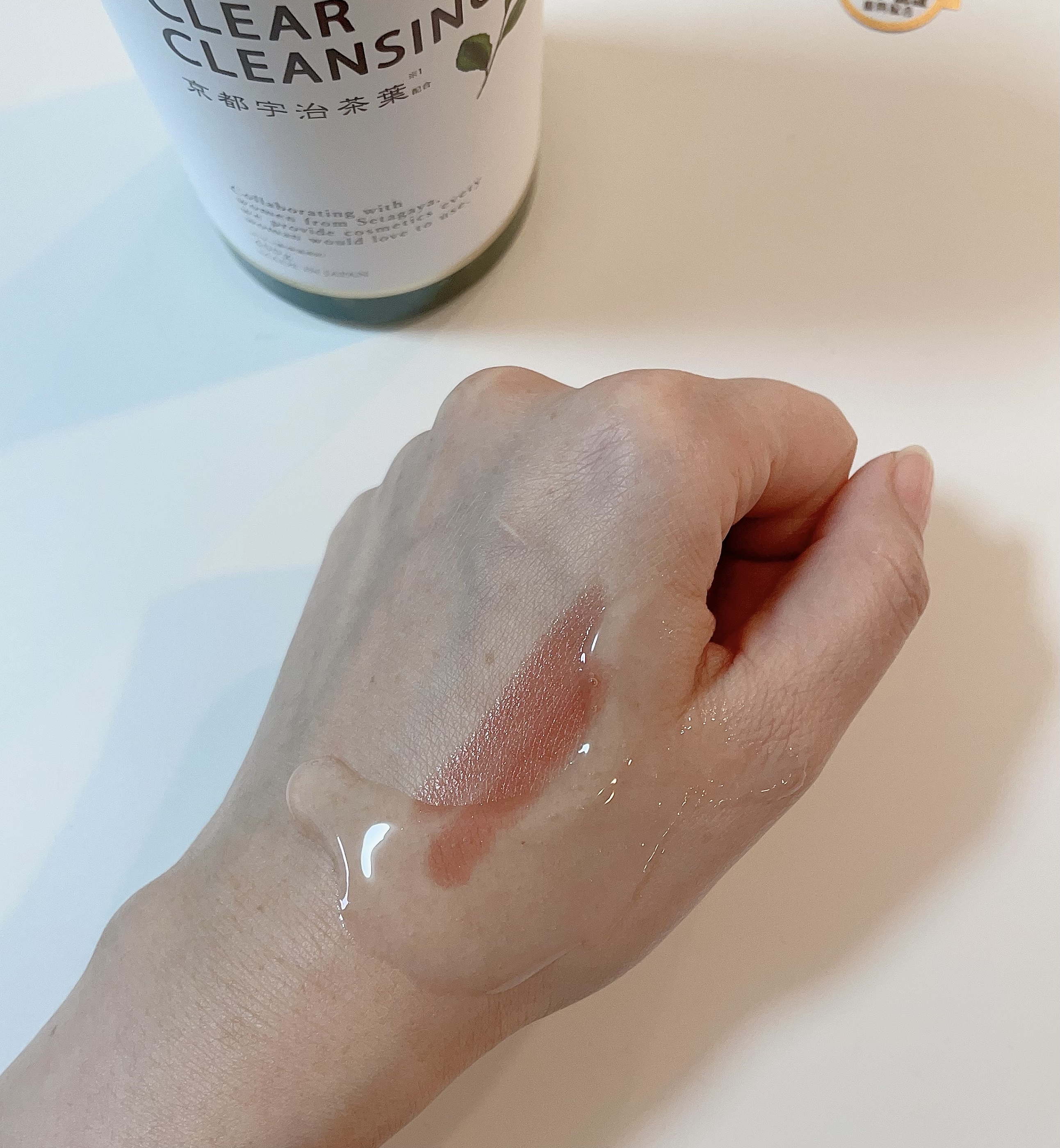 厚みのあるみずみずしいジェル状のテクスチャーでメイクなどとの馴染みがよく、広げやすかったです。 洗浄成分には国産の重曹を使用しメイクや汚れを素早く浮かし、やさしくスルッと落としてくれました。 毛穴ケアに特化した整肌効果の高い植物由来成分を5種に増量(京都宇治茶葉、ダイズエキス、海藻エキス、ライチエキス、ハマメリスエキス)したそうですよ!