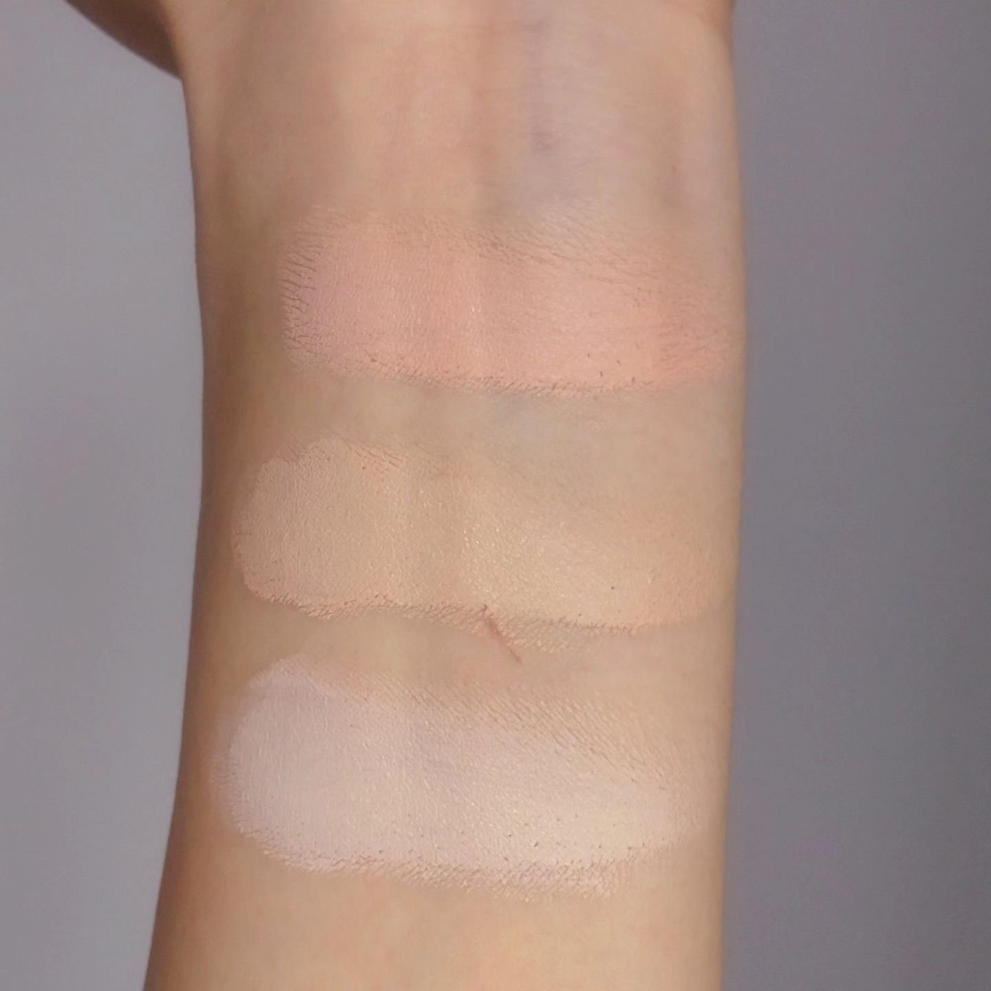 イルミの01が最もキラキラが強く、並べてみるとほんの少し緑を感じるので赤みカバーができるかも 02はくすみに 03は血色感でピンクの濃さはのばすと肌になじむ ブライトはカバー力高めでややさっぱり UVはイルミ同様みずみずしくてSPF値高め イルミ01〜03はのばすとパール感薄まるのでハイライターとしても使える ブライトは他よりカバー力高いかわりに若干キシキシを感じる UVはツヤと質感のバランスがいいけどみずみずしいから夏にはちょっと崩れやすいかも