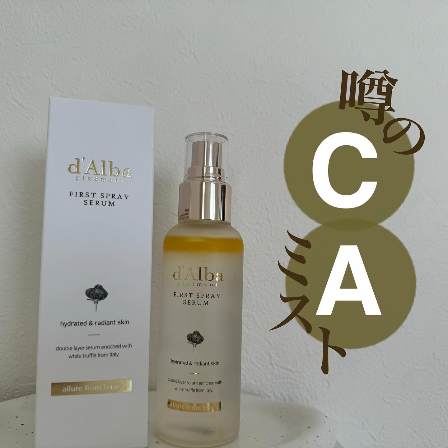 BeautyMeets企画でいただきました。#ダルバホワイトトリュフファーストスプレーセラム(エッセンス) 50mld'Albaなんとイタリア産ホワイトトリュフ配合で少しリッチな気分になれる保湿ケアミストです。少し黄色みのあるさらさらのオイル...