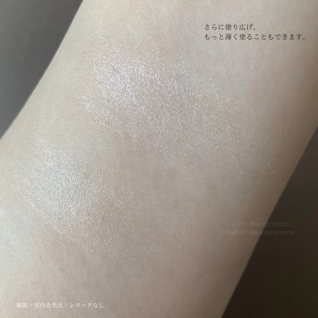 水分エッセンス60%配合 しっとり潤いのあるセラムテクスチャー キラキラ綺麗な微細なパールが内側から自然に発光しているような透けツヤ仕上がりに✨ 目頭、頬、鼻先、顎などにハイライトとして使うのがオススメ!