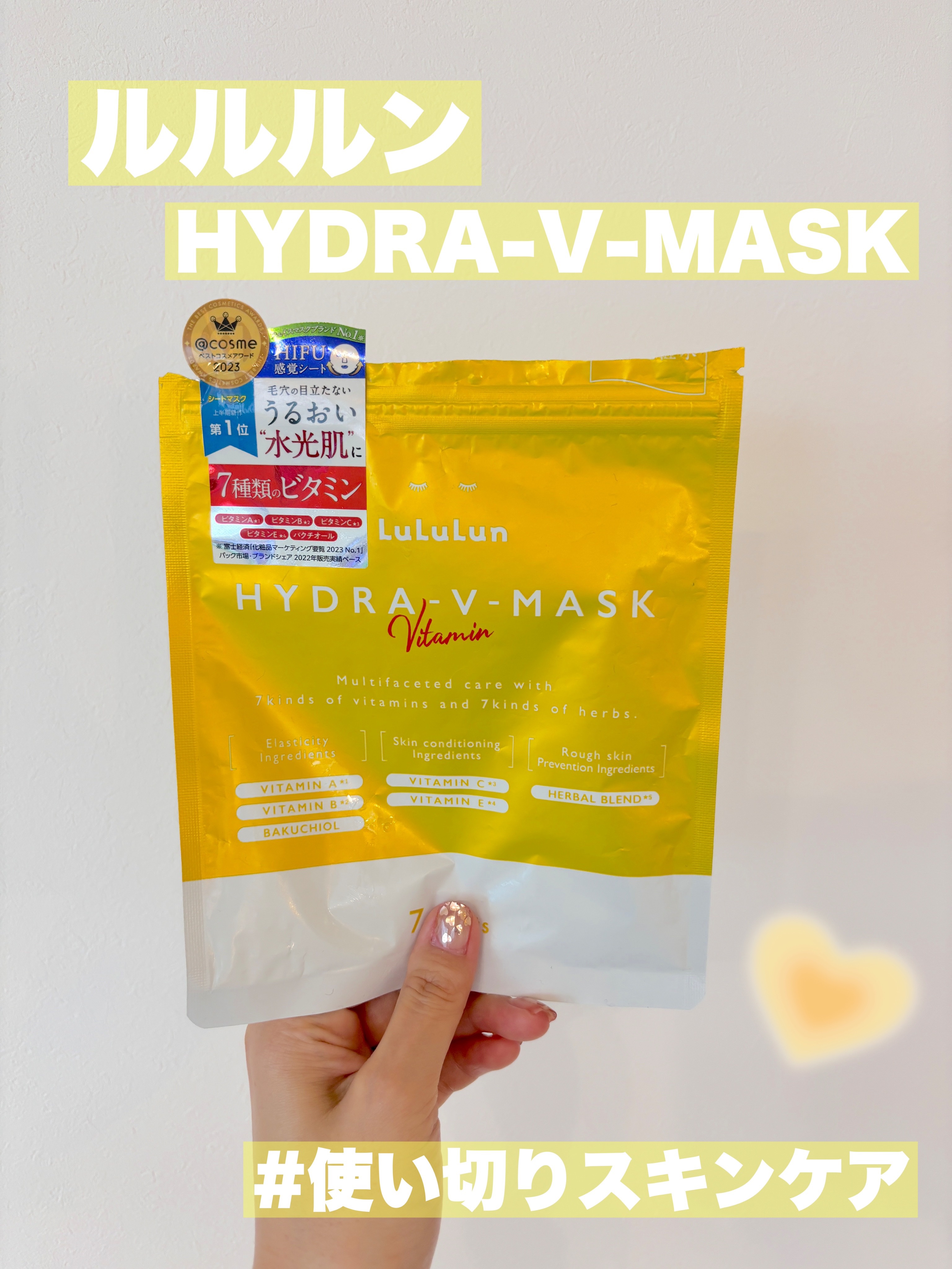 - ルルルンからビタミンたっぷりの化粧水フェイスマスクが新登場。 7種類のビタミン※1と7種類のハーブ※1で肌全体を素早くケア&集中肌メンテナンス。 新開発のフェイスラインに密着するシートで肌を引き締めながら肌のすみずみ※2までうるおいで満たし、毛穴の目立たないうるおいたっぷりの“水光肌”へ。 (※1 全て保湿成分として ※2 角質層まで)