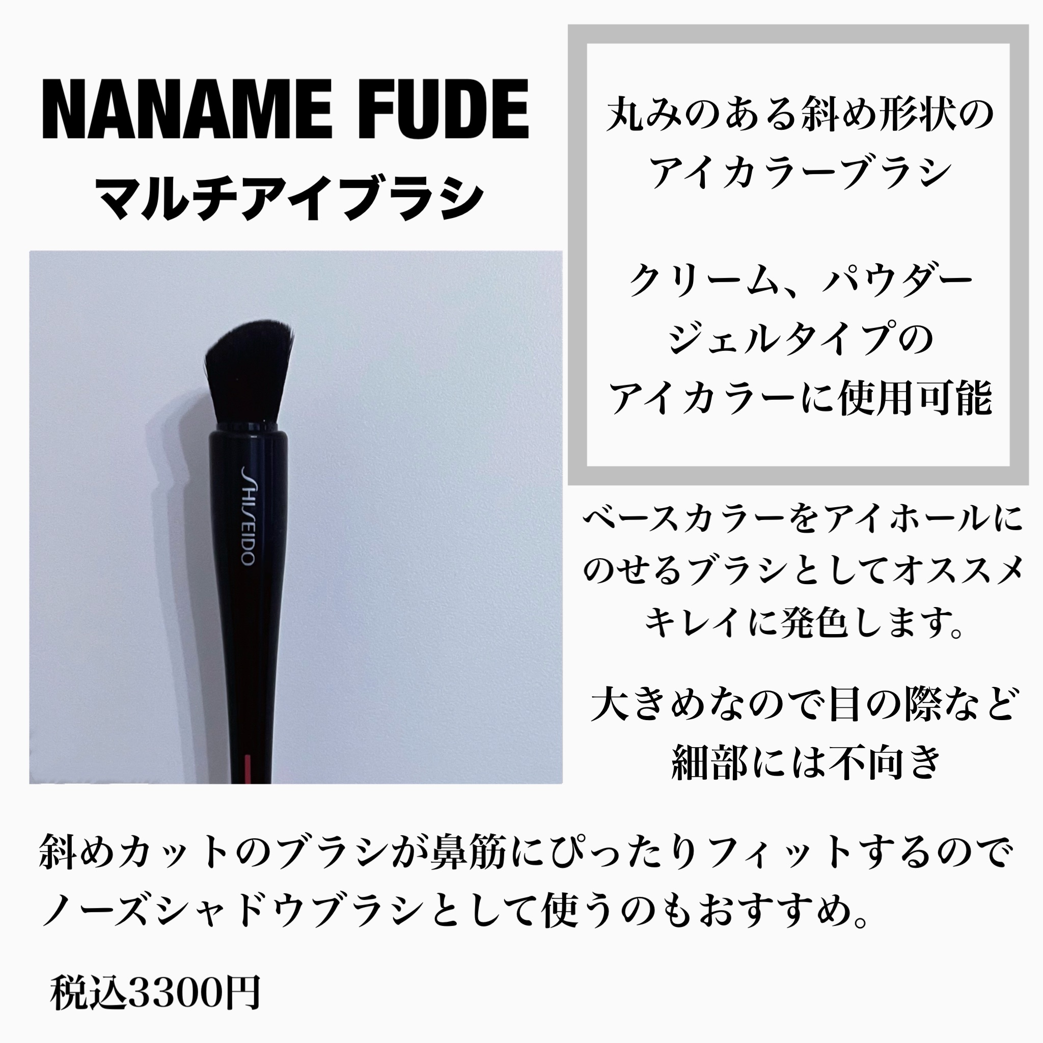\\ブラシでメイクは変わる❸//📍SHISEIDONANAMEFUDEマルチアイブラシ☑お値段 資生堂は4/17(木)より値上げ ¥3,300(税込)▹▹▸¥3,410(税込)☑オススメ アイシャドウをふんわりとのせたい方📍SHISEIDOH...