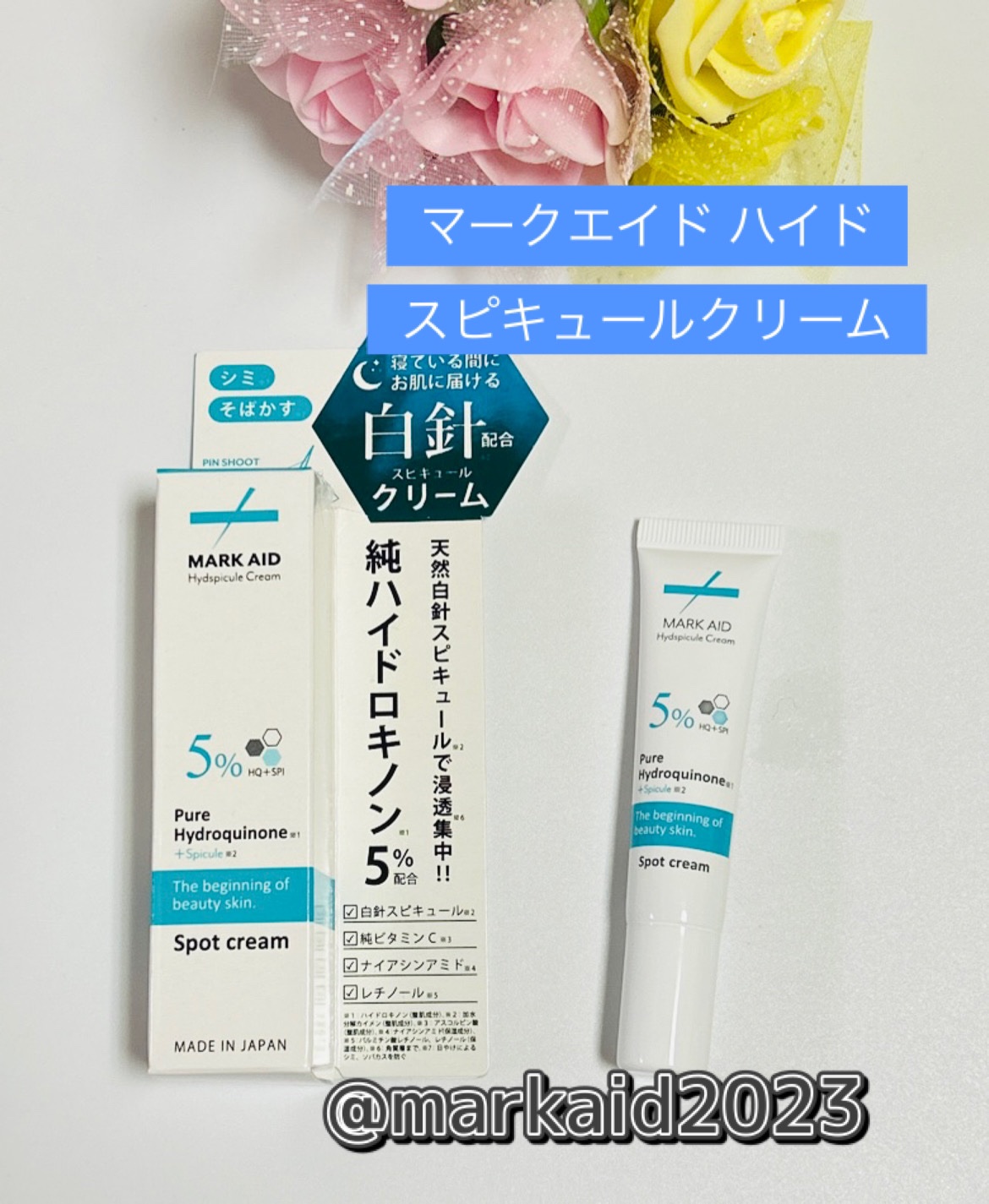 純ハイドロキノン(整肌成分)5%配合の天然白針スピキュール(整肌成分)クリーム✨ シミやソバカスなど気になるか所に指や綿棒でピンポイント使いするアイテムです。 少量ずつ出しやすいテクスチャーで、タレにくいので、狙ったところ塗りやすかったです😊