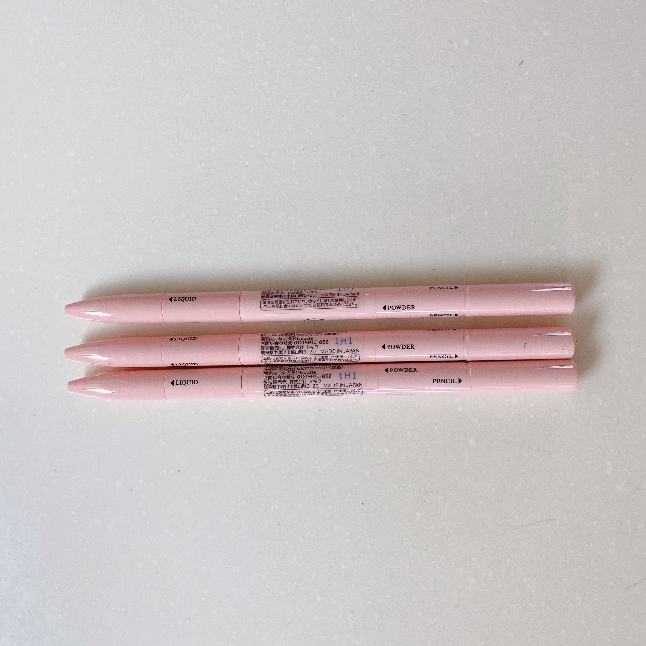 - イガリ的まゆげの印象自由自在 リキッド・パウダー・ペンシルが1本になったハイスペックアイブロウペンシル。 ・立体感リキッド:眉尻や眉毛のベースになる薄色リキッド。 ・ふんわりパウダー:眉頭のメイクが簡単になるやわらかな発色のパウダー。 ・しっかりペンシル:1本1本描きやすい高密着ペンシル。