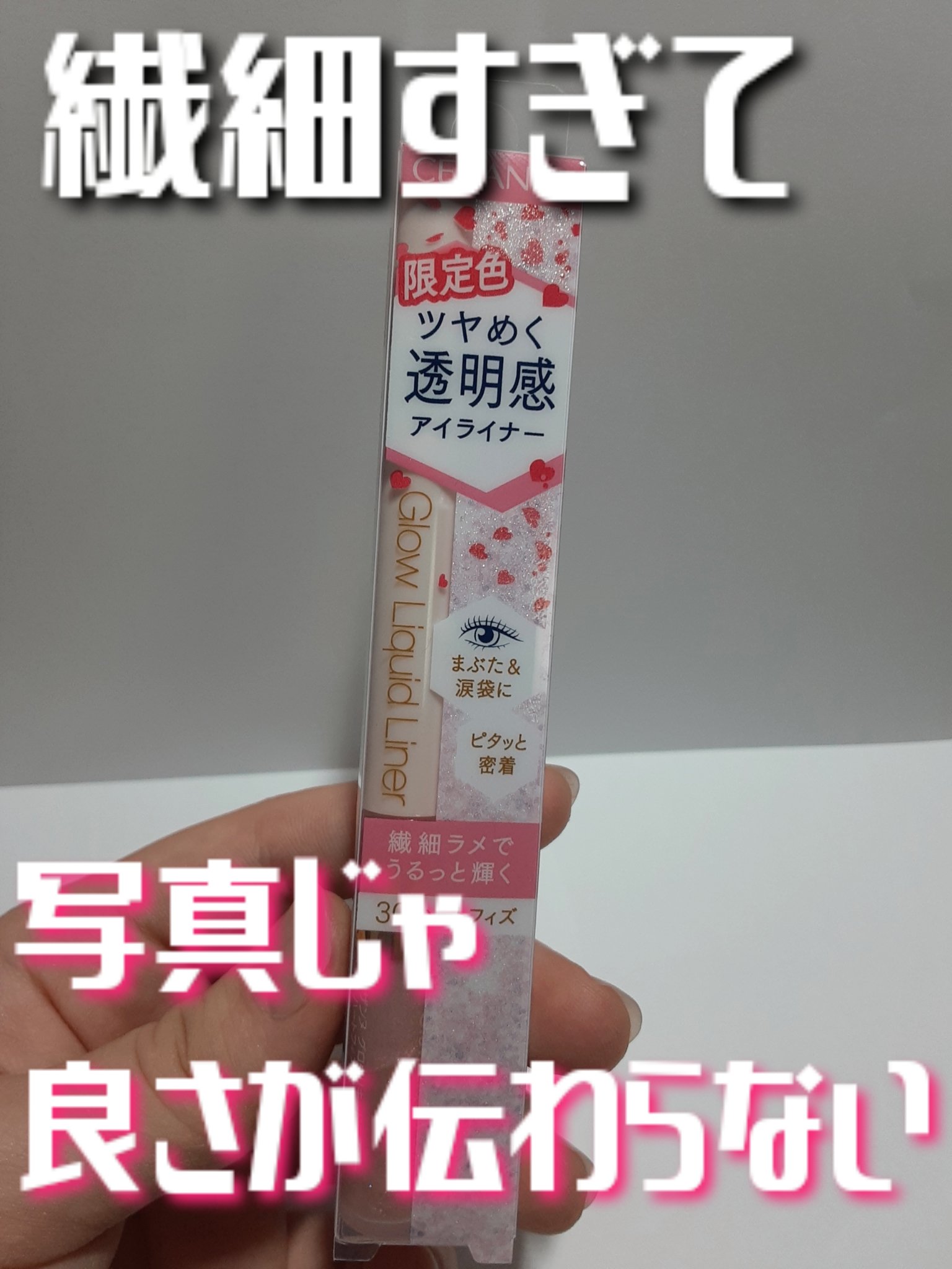 涙袋のちょい上?1番光が入る部分にラメライナー引くのにハマっててコスパ良過ぎて結局3色全部購入。 他社のラメライナーに比べて繊細で自然な大きさのラメ🫧 多色ラメで使いやすいクリスタルカラー。 どんなメイクにも合わせやすく、塗るだけで一気に目元が華やかになります💜 ダントツ1番使用頻度高いハートフィズ🩷 ピンクベージュ系、ピンク系のメイクと相性抜群。これ引くだけで一気に可愛らしいうるっと涙袋爆誕🥺