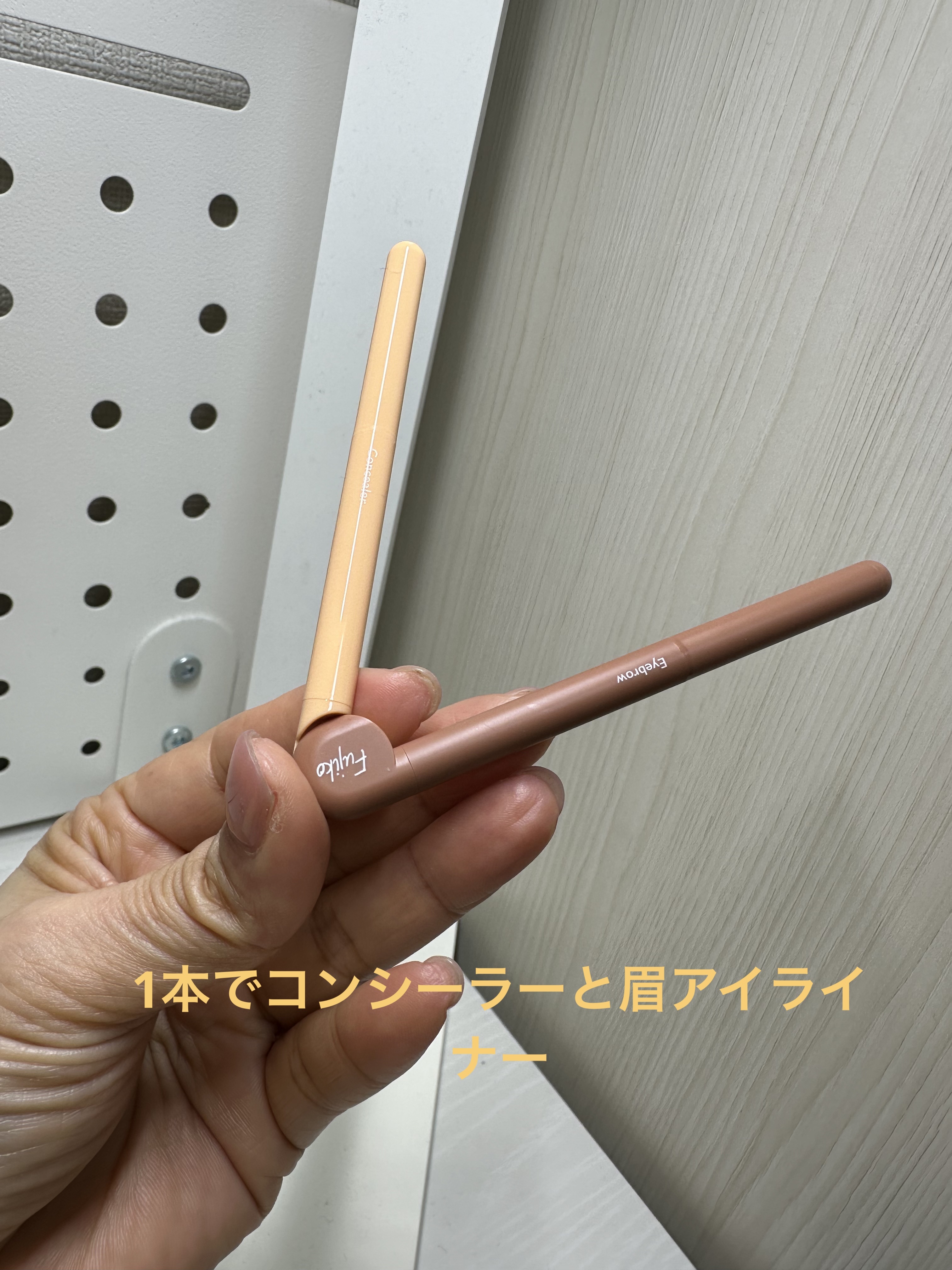 コンシーラー付きのアイブロウペンシル!コンシーラーがあるからお直しにも便利なアイテムでちょっと直したい時とかありがたいアイテム♡ ウォータープルーフだから落ちにくく長時間キレイが続く! 折りたたみ式だからポーチの邪魔にならず良かったよ!