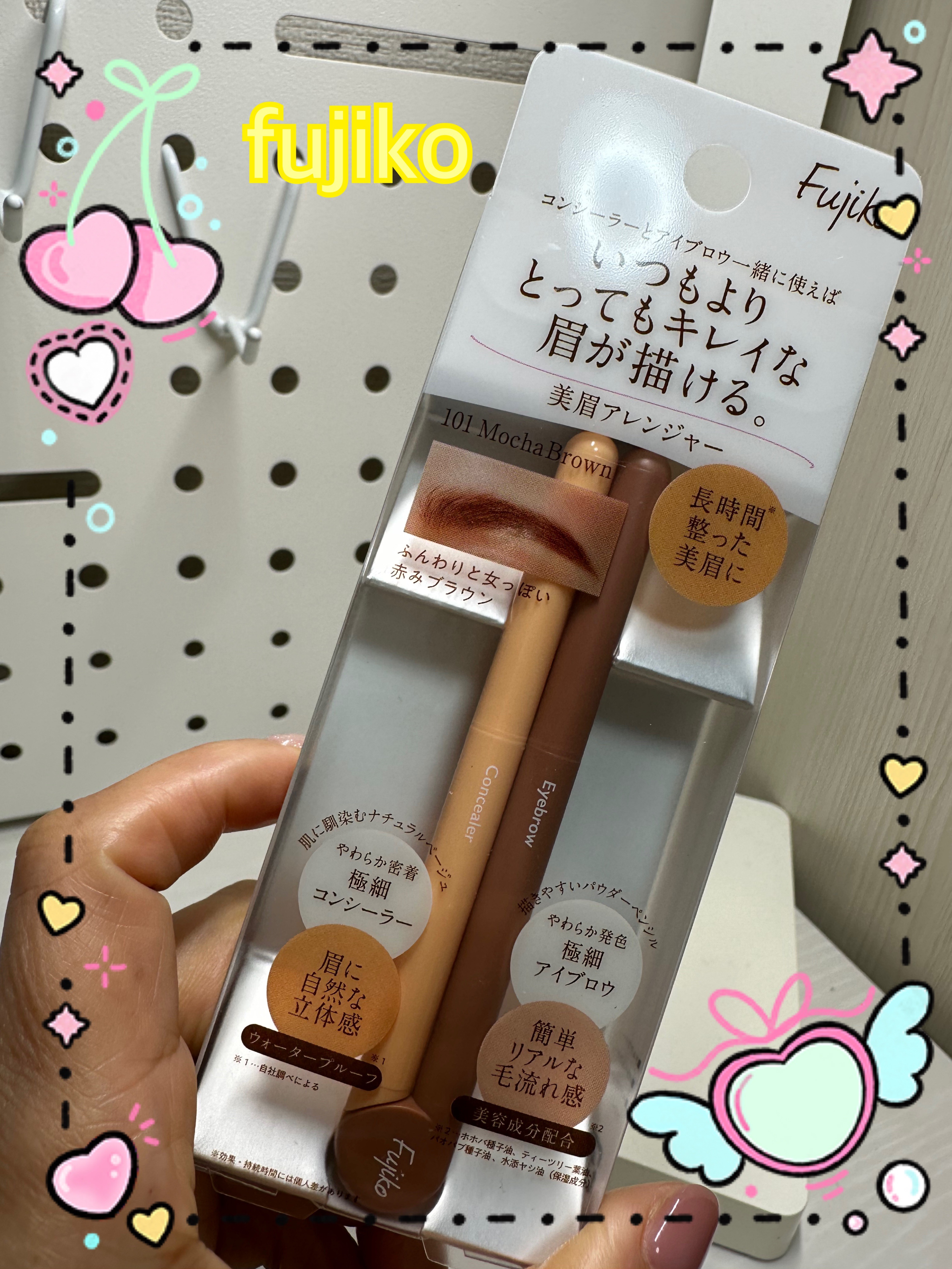 - コンシーラーとアイブロウ一緒に使えば “いつもよりとってもキレイな眉が描ける。” フジコの新作美眉アイテムは、コンシーラーとアイブロウのWエンド! アイブロウとコンシーラーを一緒に使うことで、不思議なほどに簡単に美眉が整います。 ・アイブロウ(直径1.5mm) 描きやすい極細パウダーペンシルで 簡単リアルな毛流れ感。 眉毛思いの美容成分配合※1 ※1…ホホバ種子油、ティーツリー葉油、バオバブ種子油、水添ヤシ油(保湿成分) ・コンシーラー(直径2mm) やわらかに密着する極細コンシーラー。 眉の輪郭をなぞるだけで自然な立体感。 汗・水・皮脂に強いウォータープルーフ※2 ※2…自社調べによる。 ※効果・持続時間には個人差があります 好みの角度で描けてカチカチとコンパクトに折りたためる角度自在のコンパス構造。 まるでコンパスのような特殊形状はフジコらしい遊び心満載。 描きやすい極細コンシーラーと極細アイブロウW使いなら リアルな毛流れ感+自然な立体感でいつもよりとってもキレイな眉に。 \なぞるだけ! 瞬間、驚きの3D美眉/ 【美眉アレンジャーの使い方】 1・お好みの形に眉を描く 2・コンシーラーで眉の輪郭をなぞってトントンぼかす 3・完成!リアルな毛流れ感と自然な立体感ある美眉に整う。 ※ペンシルとコンシーラーはお好みの順番でご使用ください ※コンシーラーは乾きやすいため素早く馴染ませてください