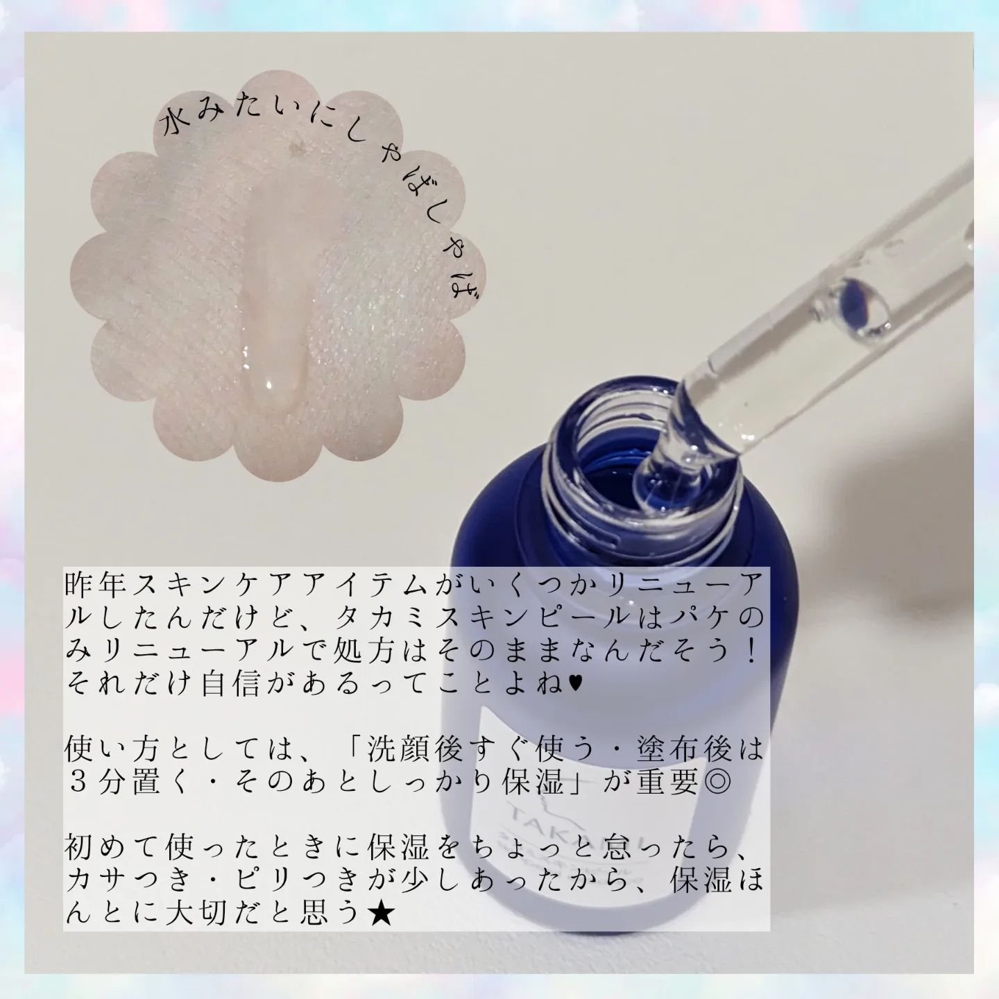- リニューアル発売 “美肌の鍵”を握る正しい肌の代謝に着目した角質美容水 加齢や生活環境、ストレスなどにより引き起こされるさまざまな肌悩みの根幹にある“肌代謝の乱れ”に日々寄り添うケアで肌本来の美しさを呼び覚まします。 ■2005年の発売以来、変わることのない絶妙なレシピ 角質層のすみずみに浸透させるために計算された水のようなテクスチャー、美容皮膚の現場で20万人以上※の“生きた肌”に向き合い導き出した絶妙な配合バランス。この処方こそ、長年多くの方に選ばれているタカミの「答え」です。 ■どんな年代、肌質でも使える 「タカミスキンピール」は、繰り返す皮脂トラブルや肌荒れ、毛穴の悩み、キメの乱れによるくすみ・ゴワつきなどの根本の原因である肌代謝の乱れに着目。肌が抱えるさまざまな悩みに幅広く届く、年代や肌質を超えた定番です。 ※ 2008年1月~2016年8月までの延べ人数