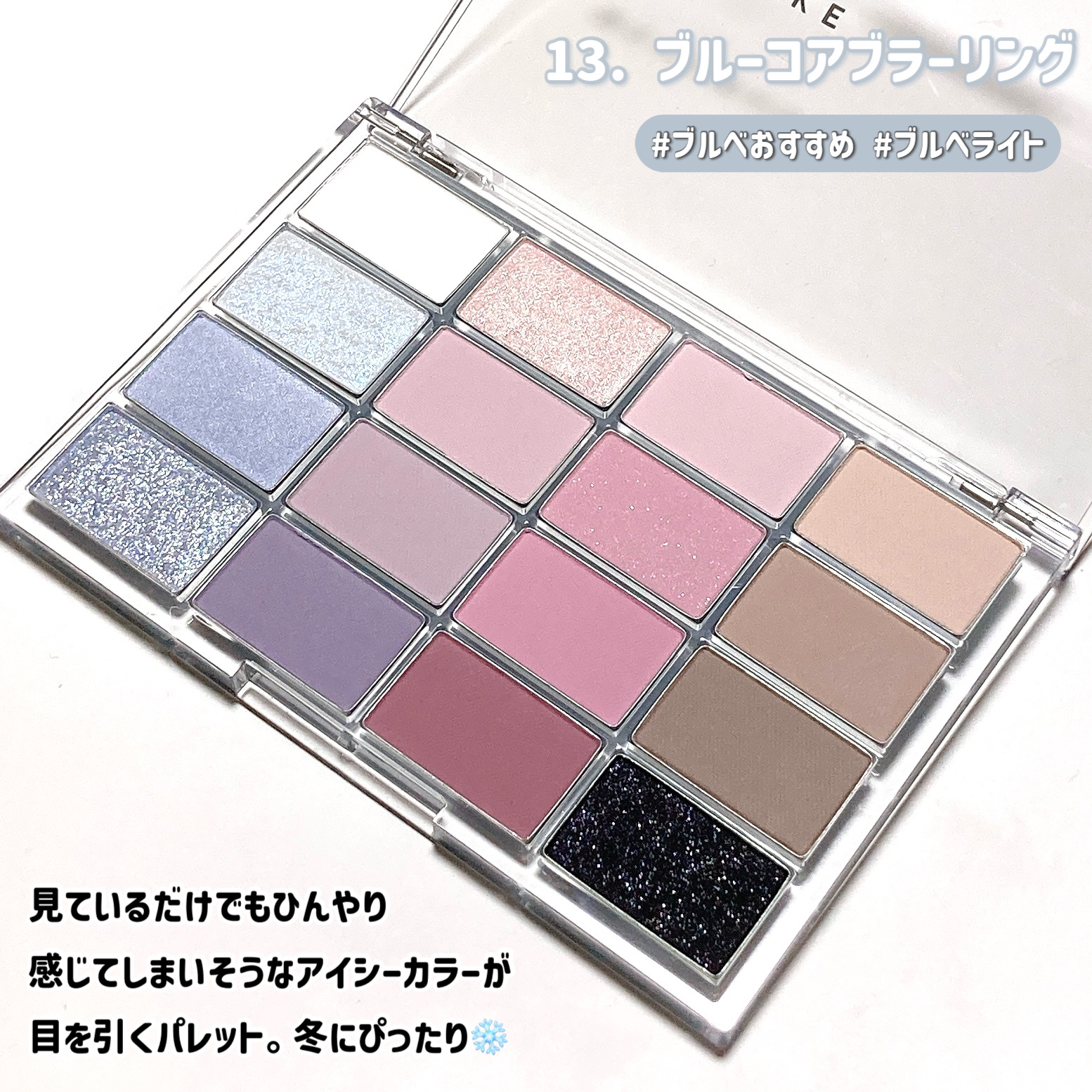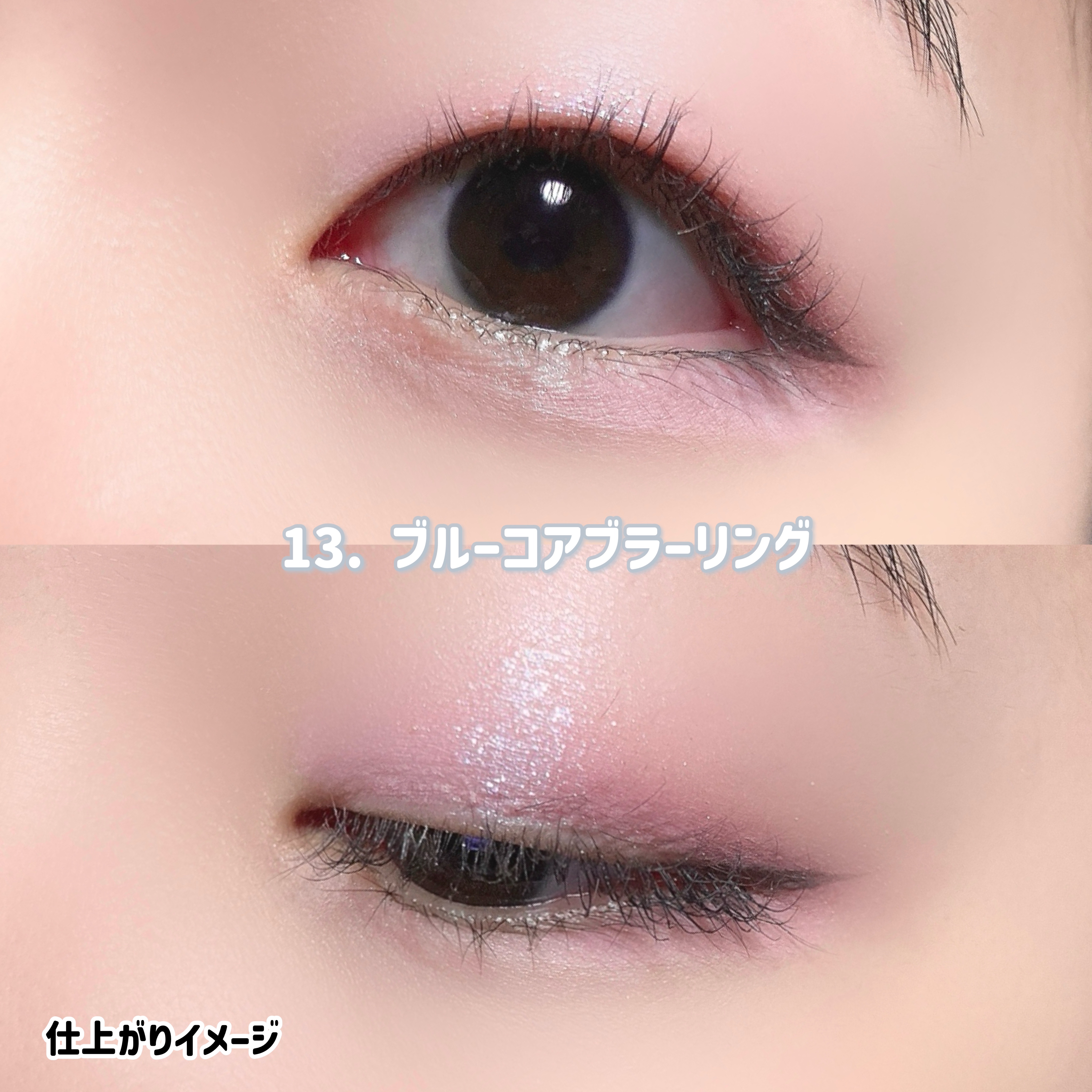 透明感のあるアイシーブルーにラベンダーを仕込む!! ピンクを仕込むより馴染みがよく、グレージュを仕込むより優しい✨ 『SOFT BLURRING EYE PALETTE』は韓国コスメの中でも最近特にお気に入りのパレット。 16色入りで全部絶妙な配色なんだよね😆 私はブルベ冬ですが、これは柔らかい透明感*が出るのでお気に入り🩵