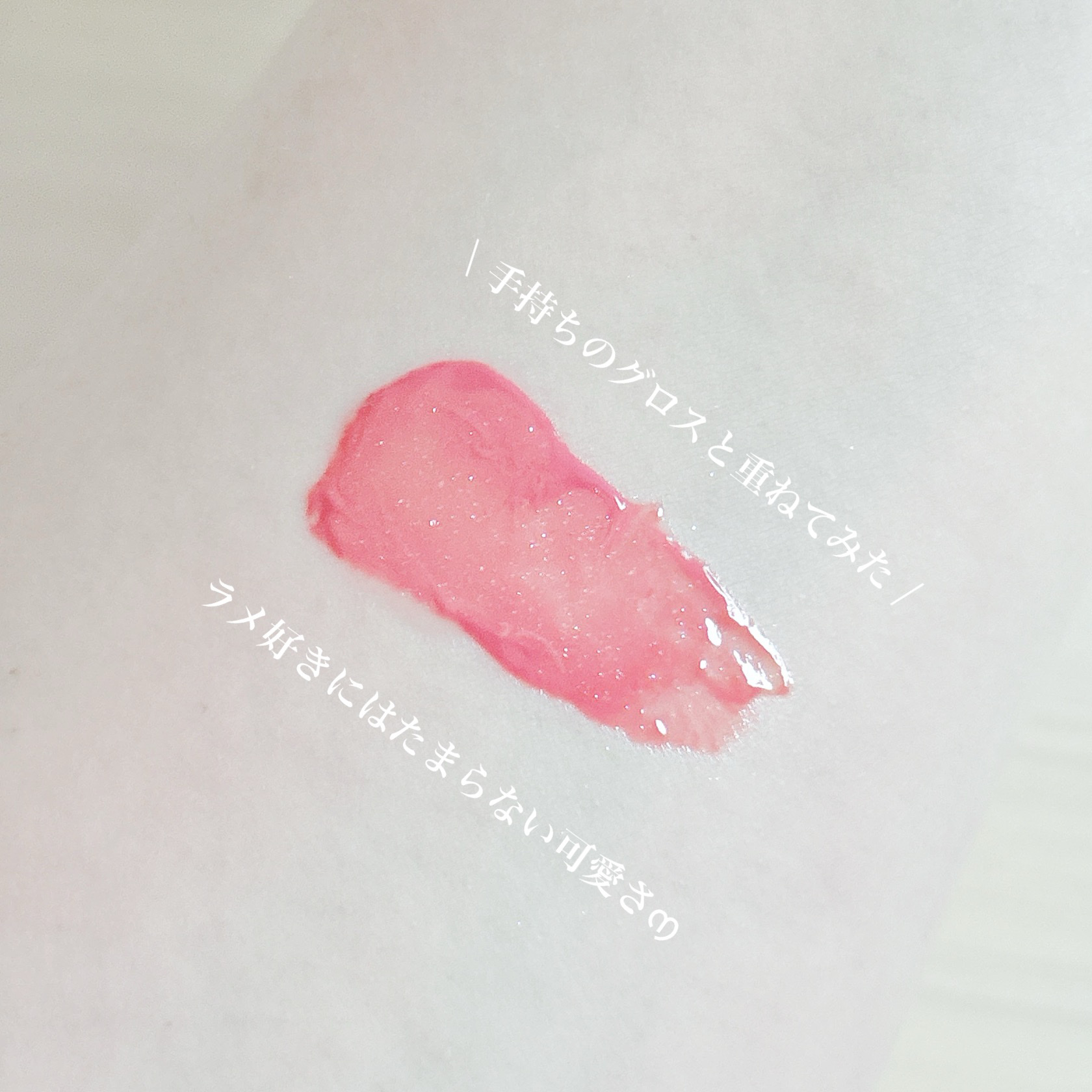 ラメやグリッター好きさんにはたまらない輝き! 爆盛れ確定なグリッター◎ 細かめなグリッターでピンク、ゴールド、パープル、オレンジの配色が神がかってて コーラルにまとまってる印象◎ ツヤ感が美しく、ぷるんぷるんの唇へ◎ 私の唇の上では赤みが強く発色するかな