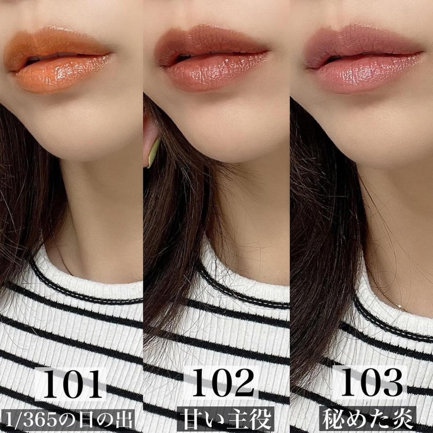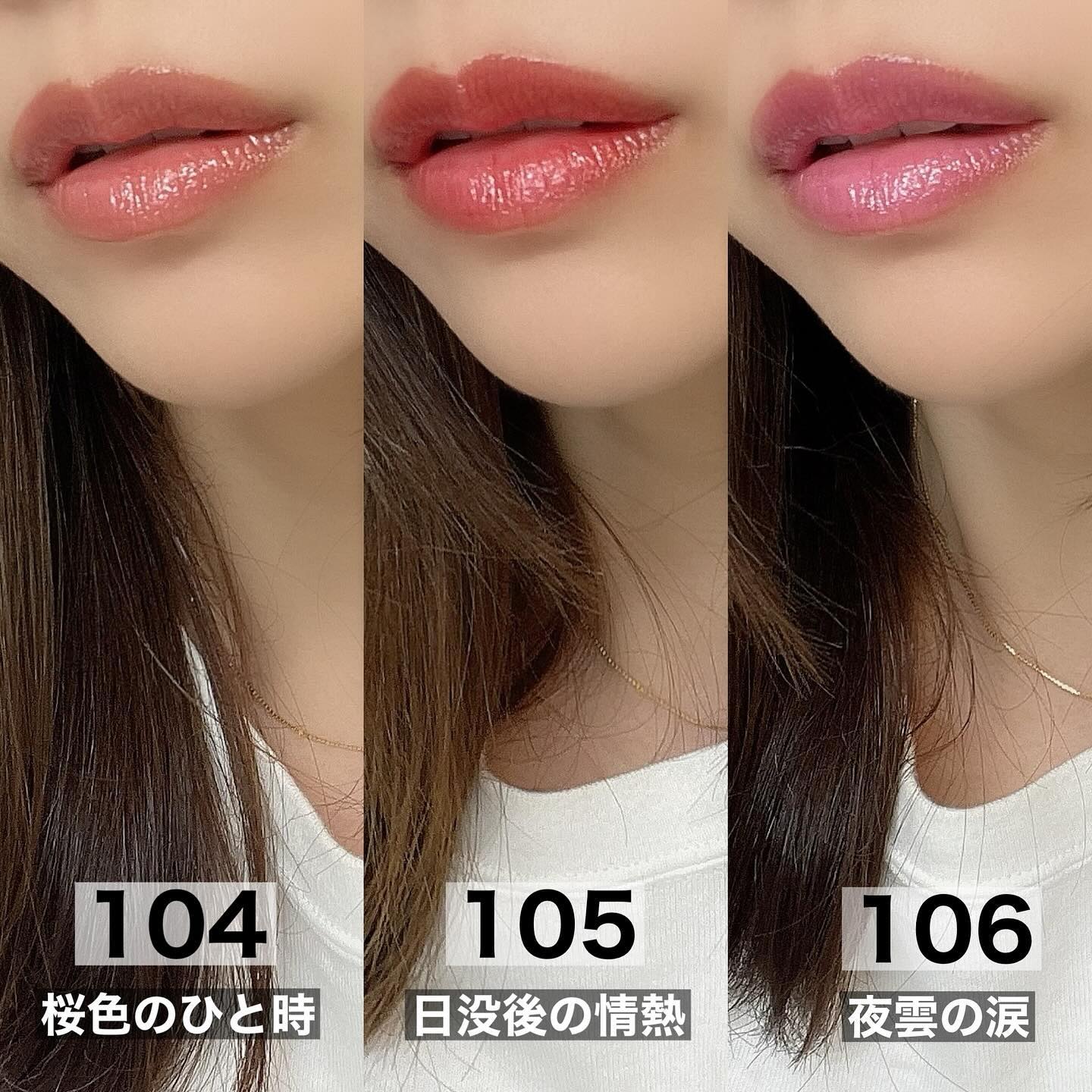 艶感と安定の色もち.年々唇の色が消えていくからあるとすごく安心なのよ🥺✨ 定番の中で私がよく使うカラーは陽炎、パンプキンワイン、5:00AM、憧れの日光浴! そして新色の綿雲33000ft、100億haの砂海です!