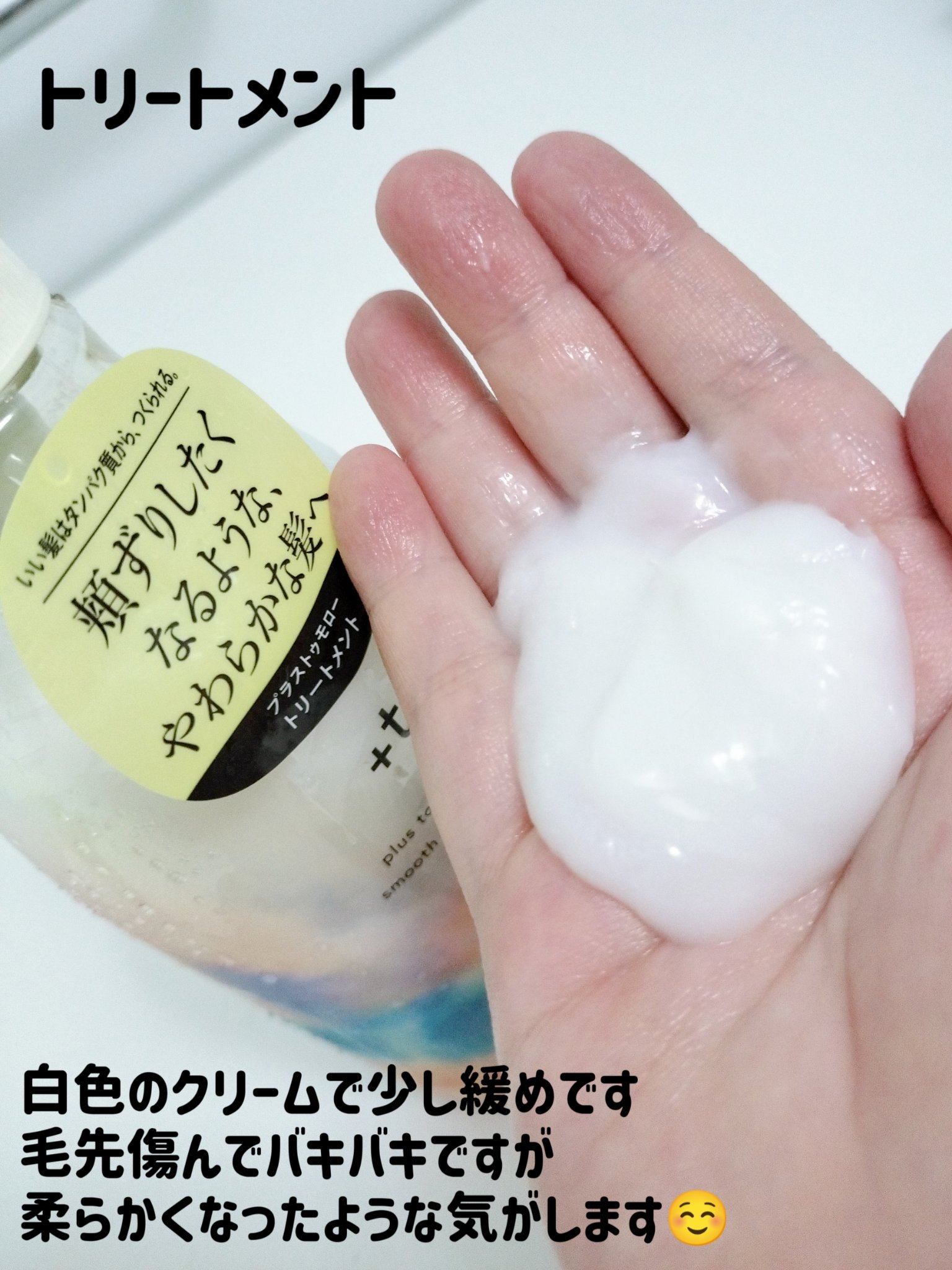 - 髪とタンパク質の関係に着目した「ネイチャープロテインCP処方※2」毛髪ダメージを補修し、髪本来がもっているしなやかさを引き出します 処方アプローチ: しなやかな「頬ずりしたくなる髪」へと導くタンパク質全方位アプローチ※4 ♦ダメージを受けた髪の「空洞化」にも着目。 ダメージホールさえも、タンパク質のもととなるアミノ酸で補修し、成分を抱え込める状態へ。 ➢ ダメージを受けた髪は、スポンジのように毛髪内部が空洞化。髪に元々蓄えられている成分が流失しダメージホールが発生します。また、穴があいた状態ではいくら内部を満たすかのように成分補給をしても、ため込むことができず流れ出る状態に陥ります。 +tmrはタンパク質の元となるアミノ酸(アルギニン)でダメージホールを補修。成分を抱え込み、髪をみっちりとした状態へと導きます。 ♦髪とタンパク質の関係に着目した「ネイチャープロテインCP処方※2」 パール由来タンパク質成分を含む+tmrの独自処方「ネイチャープロテインCP処方」により、毛幹、および髪の85%~90%を占めるコルテックスへとアプローチ。髪のダメージを補修します。 ➢髪のしなやかさを司る毛髪タンパク質の最小単位。その直径はマイクロスコープでも確認することができない、わずか1.2nm、ダメージを受けることでバネ状が伸び縦方向への引っ張りにも影響、切れ毛の原因の一つにもなります。ミクロレベルで髪を補修し、ダメージにより失われた髪の弾性を健やかな状態へと導きます。 ➢カラーやパーマによりダメージを受けた髪は、コルテックス内部のタンパク質などの成分を留めるための結合がもろくなり、成分を抱え込めない状態に。縦横無尽に張り巡らされた毛髪内結合の強化をサポートし、髪が切れにくい状態へ。 香調: +tmrのこだわりは心まで満たされるかのようなフレッシュフローラルの香り ♦「頬ずりしたくなるほど、やわらかな髪」に気持ちまで弾むような香りにこだわりました。すがすがしく晴れた空、穏やかな空気、そんな心弾むひと時をイメージしたフレッシュフローラルの香りです。 パッケージデザイン: 見ただけで心が弾む、空に浮かぶ彩雲(さいうん)をイメージ ♦+tmrと一緒なら、今日が、明日がもっといい日になる。そんな未来への希望が広がるデザインにサステナブルな想いを込めたパッケージデザインへと仕上げました。 環境への配慮 ♦シャンプー・トリートメントの本体ボトル※5約66%がリサイクルPETを使用 ♦詰め替え用パッケージの約44%に植物由来のプラスチック、約7%にリサイクルPETを使用 先行発売:2023年11月1日より全国の@cosme STORE / @cosme SHOPPINGにて先行発売 全国発売:2024年2月より全国順次展開 ※2 生命の源・海が育んだパールプロテイン由来成分(加水分解コンキオリン)、アミノ酸(リシンHCl)、アミノ酸由来成分(ジラウロイルグルタミン酸リシンNa )(補修)と自然の恵み・発酵のちからを生かしたスキンケア発想の保湿成分(サッカロミセス溶解質エキス、グリセリン)配合処方 ※4 ネイチャープロテインCP処方と、空洞化をケアする成分、タンパク質の元となるアミノ酸「アルギニン」でそれぞれアプローチすることの総称 ※5 ポンプ部分を除く