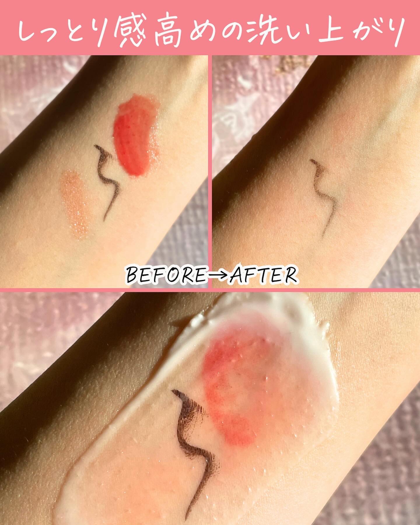 毛穴汚れ、ブラックヘッドも洗い流す。 洗い上がり、油膜感が少し残る。▶▷▶ダブル洗顔すれば大丈夫 ブライトニング、肌トーンアップ。 洗い上がりのヌルヌル感は、少ない。 緑色の方がミルククレンジングみたいにトロトロ。 でも、赤色も、やわらかい部類に入る。