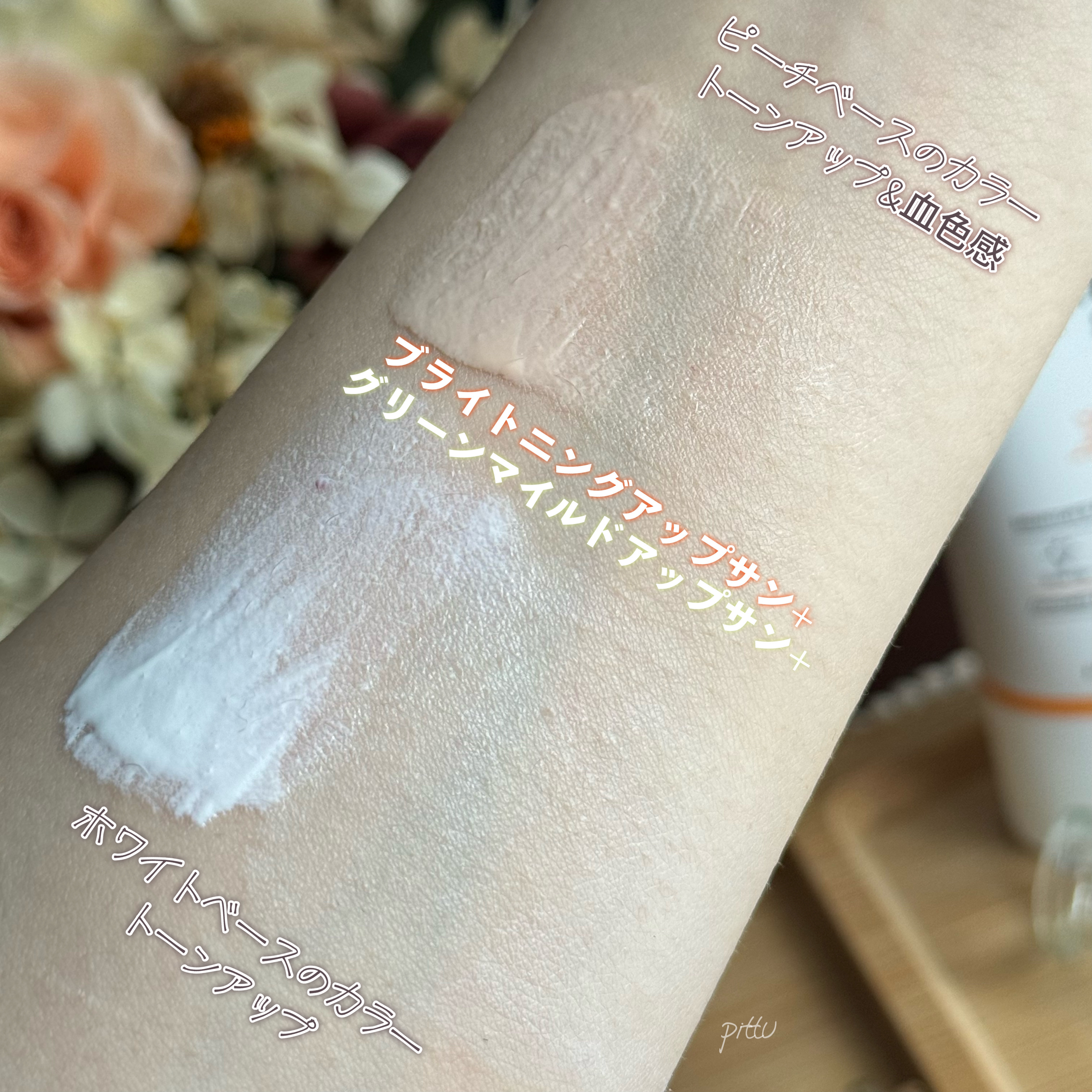 紫外線散乱剤の日焼け止めなので、肌で光を跳ね返し、紫外線が肌に吸収されないようにしてくれるんだって✨ 塗った瞬間から紫外線を反射し、白浮きしにくくモロモロも出にくいので化粧の邪魔にもならないんだそう ピーチカラー🍑ベースなので、自然に肌をトーンアップ*してくれて、化粧下地としても使える日焼け止め☀️ これ1本でもお肌きれい*にみせてくれるし、ベタベタしないからファンデの邪魔にもならないよ❕