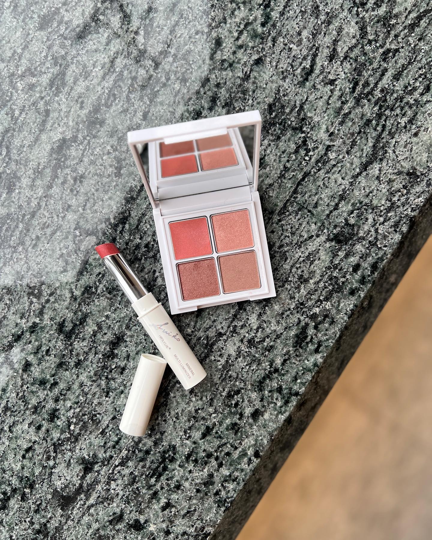Suikoでモカメイク♡SUIKOミネラルマルチカラー10ロゼブラウンとミネラルマルチルミナイザー05アネモネピンクエアリーオーラプロテクションロゼ、ルミナスヴェールファンデーションをスウォッチ✨🌸Suikoミネラルマルチカラー10ロゼブラウ...