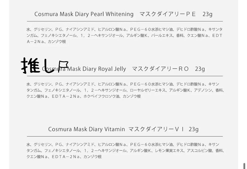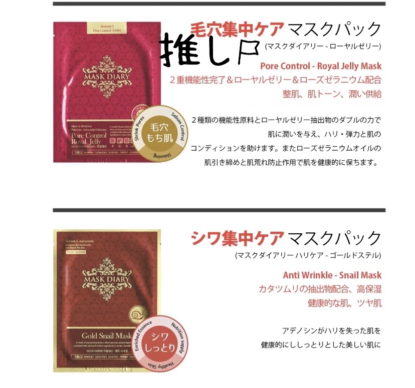 韓国コスメ専門店cosmuraさんでお買い物した時にいただいたMASKDIARYのPoreControlRoyalJelly買ったことがないメーカーだったので初めてです。いくつかタイプがあるみたいで、こちらは毛穴管理・ローヤルゼリー。ローヤル...