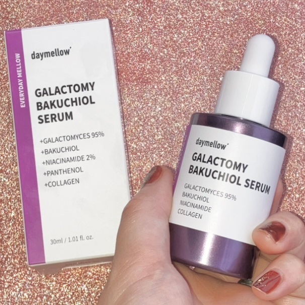 最近のお気に入りセラム💜daymellowのガラクトミーバクチオールセラム✨精製水の代わりに**ガラクトミセス発酵ろ過物95%**を使用していて、肌のキメや透明感をしっかりケアしてくれるの🥹💧さらに、純度99%バクチオール5,000ppm配合...