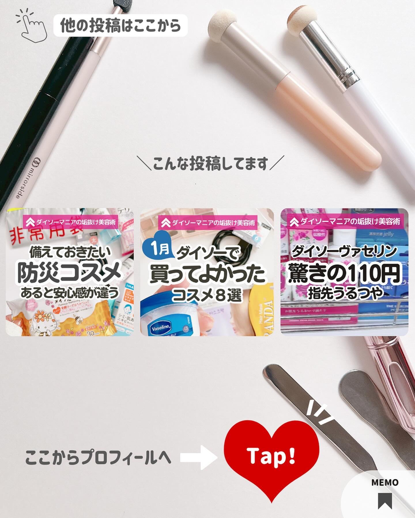 ダイソーコスメが買って正解(๑˃ᴗ˂)و💖💞 みなさんの買ってよかった100均コスメがあったらぜひぜひ教えてください💓 ここでは美容マニアが本音レビュー🧖♀️🧴 100均コスメ以外にも使ってよかったコスメをレビューしたりお得な情報もストーリーで発信中🎉・:*:・。