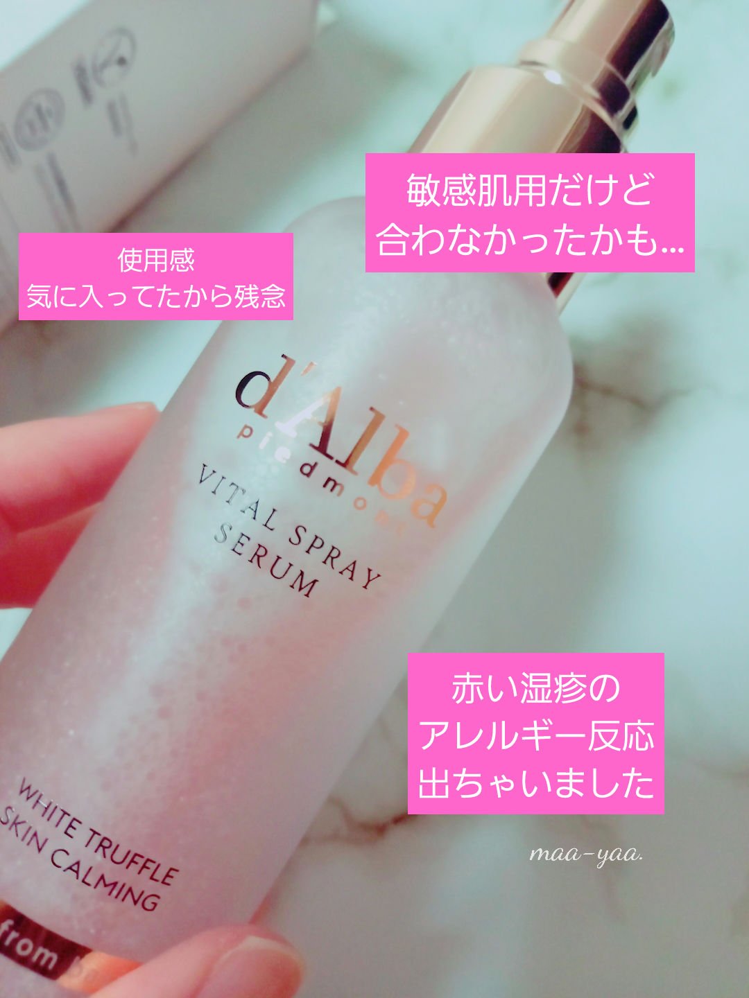 ダルバホワイトトリュフファーストスプレーセラムこれもっと早く買ってればよかった!!保湿感がたまらなくいいです👏お風呂あがり、乾燥との戦いでスキンケア忙しなかったのがこのミスト1本でなんたる安心感✨お風呂あがったらひとまずシュシュっとして着替え...