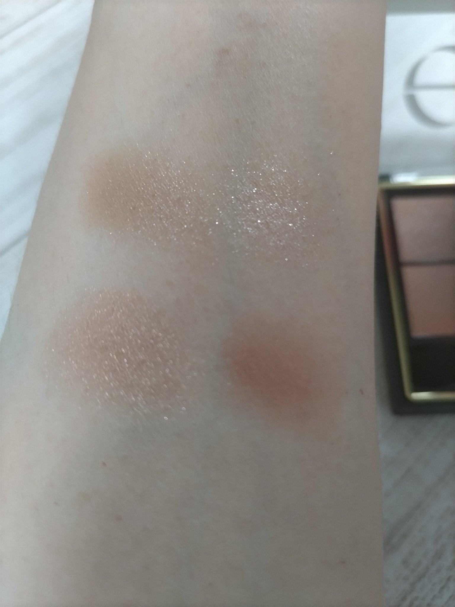 - 1.重ねてもくすまないクリアな発色。ナチュラルに溶け合う絶妙4カラー。 ツヤタイプ(左上・左下カラー):アイホール全体にぼかしたり、目尻へのポイント使いも。 ラメタイプ(右上カラー):アイホール中心や下まぶたにきらめきのアクセント。 マットタイプ(右下カラー):単色で陰影を付けたり、ツヤタイプと重ねてニュアンスをプラス。 2.うっとりするほどリッチな質感で粉飛びしないのに、軽いタッチで伸びて重ねやすいテクスチャー。 3.スクワラン(保湿)配合で目元の乾燥を防ぎます。 [PERFORMANCE] 色と質感の重ね着を楽しむ、ファッション感覚アイシャドウパレット [DESIGN] ・まぶたにひっかからない、なめらかな上質チップ ・薄型コンパクトだからポーチの中でかさばらない [QUALITY] 1.重ねてもくすまないクリアな発色 ナチュラルに溶け合う絶妙4カラー 2.パールの重ね技でまぶたに極上のツヤ感 微細多色 カラーパール 銀コーティング ガラスパール* excel GOLD-MIX処方(金パール配合)* (*右上のシャイニーカラーのみ) 3.うっとりするほどリッチな質感で粉飛び知らず!なのに、軽いタッチで伸びて重ねやすい 4.スクワラン(保湿)配合で目元の乾燥を防ぐ