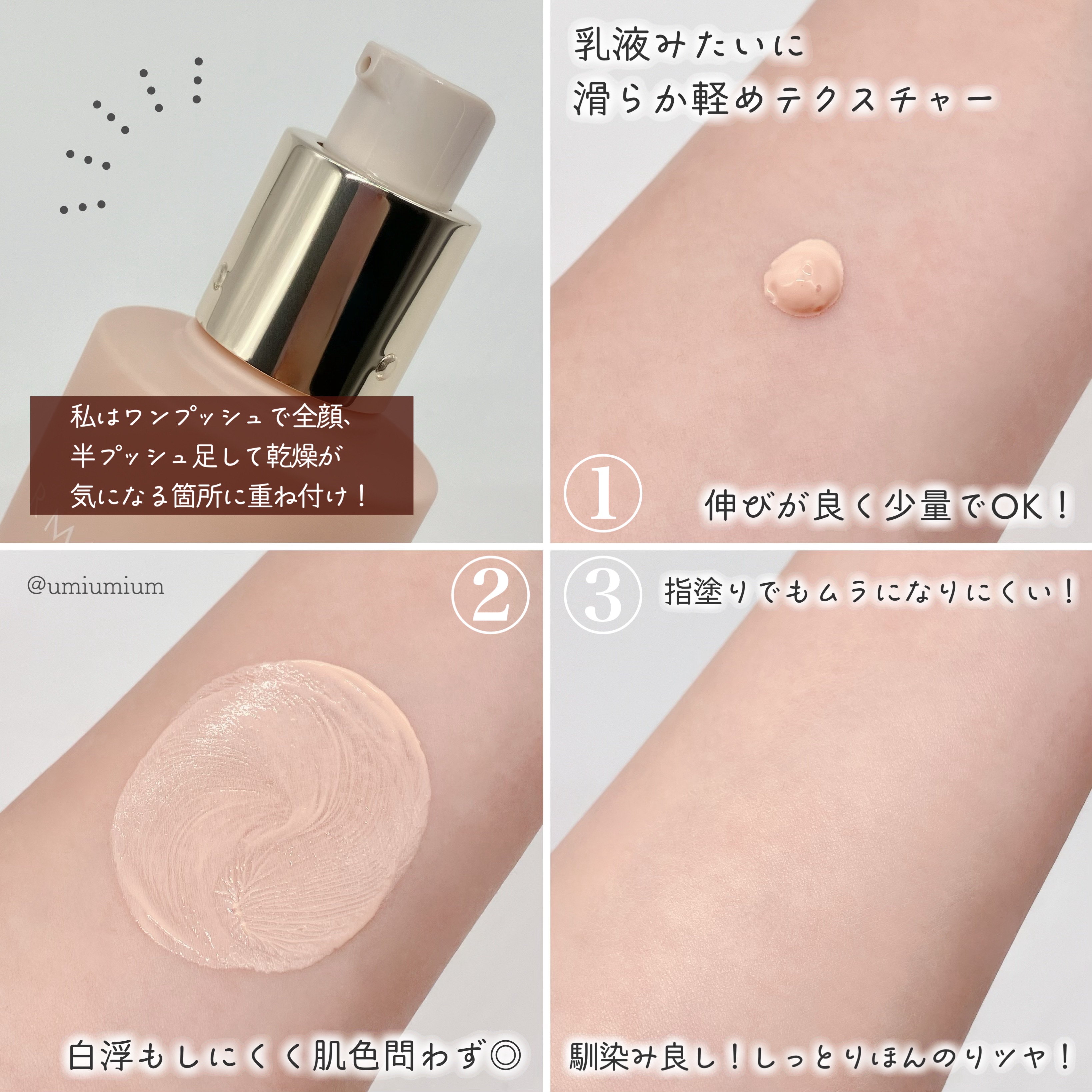| テクスチャーはスーッと伸びて塗りやすい、乾燥もせず、匂いは無臭!日焼け対策も◎ | 詳細を見る |