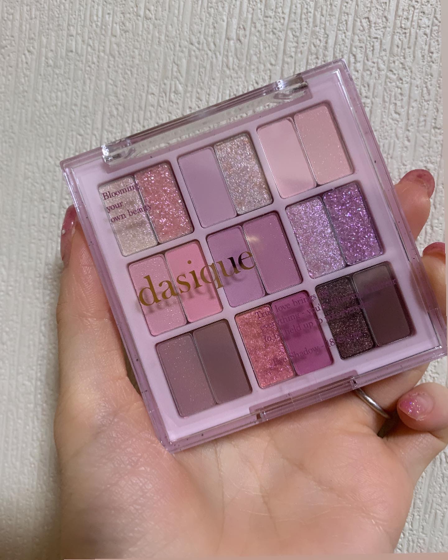 - 【舞台上のバレリーナの繊細な動きと抑制された美しさを再解釈した、dasiqueならではのバレエコアコレクション】 シマー、マット、パールなどバリエーション豊かなテクスチャーで、軽やかにまぶたにフィット。粉飛びしにくく、指先で簡単に美しい仕上がりが叶います。 柔らかいピンクベースから深みのあるシェードまで揃い、1つのパレットで普段使いのデイリーメイクから特別な日の華やかメイクまで幅広く楽しめます。 - 活用しやすいテクスチャーとカラーバリエーションで毎日新しいムードを完成してくれるデイジーク シャドウパレット。 デイリーメイクからポイントメイクまで演出が可能。 感覚的な9種類の色味でムードUP! 多彩でウェアラブルなテクスチャーで高い活用度!