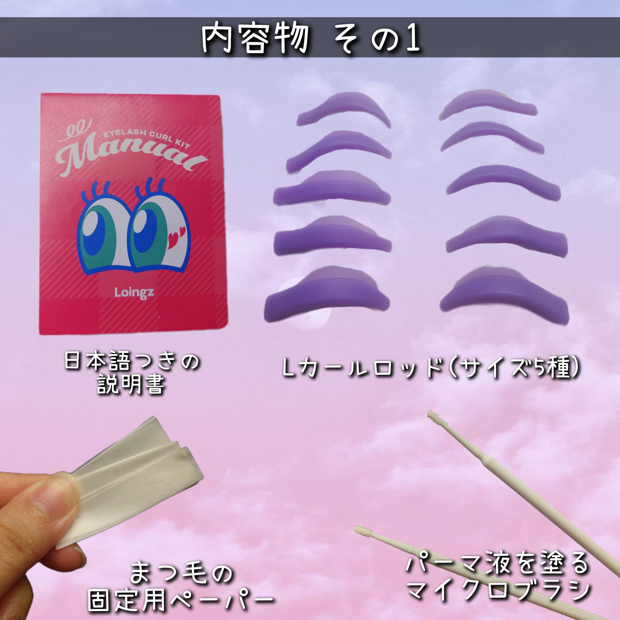 自宅でまつ毛パーマが出来るよ✨️ 必要な物が全て揃っていて、日本語の説明書付き。 CカールとLカールの選べるロッドにサイズも豊富🫶 翌日もしっかりカールしていて嬉しいです🙌