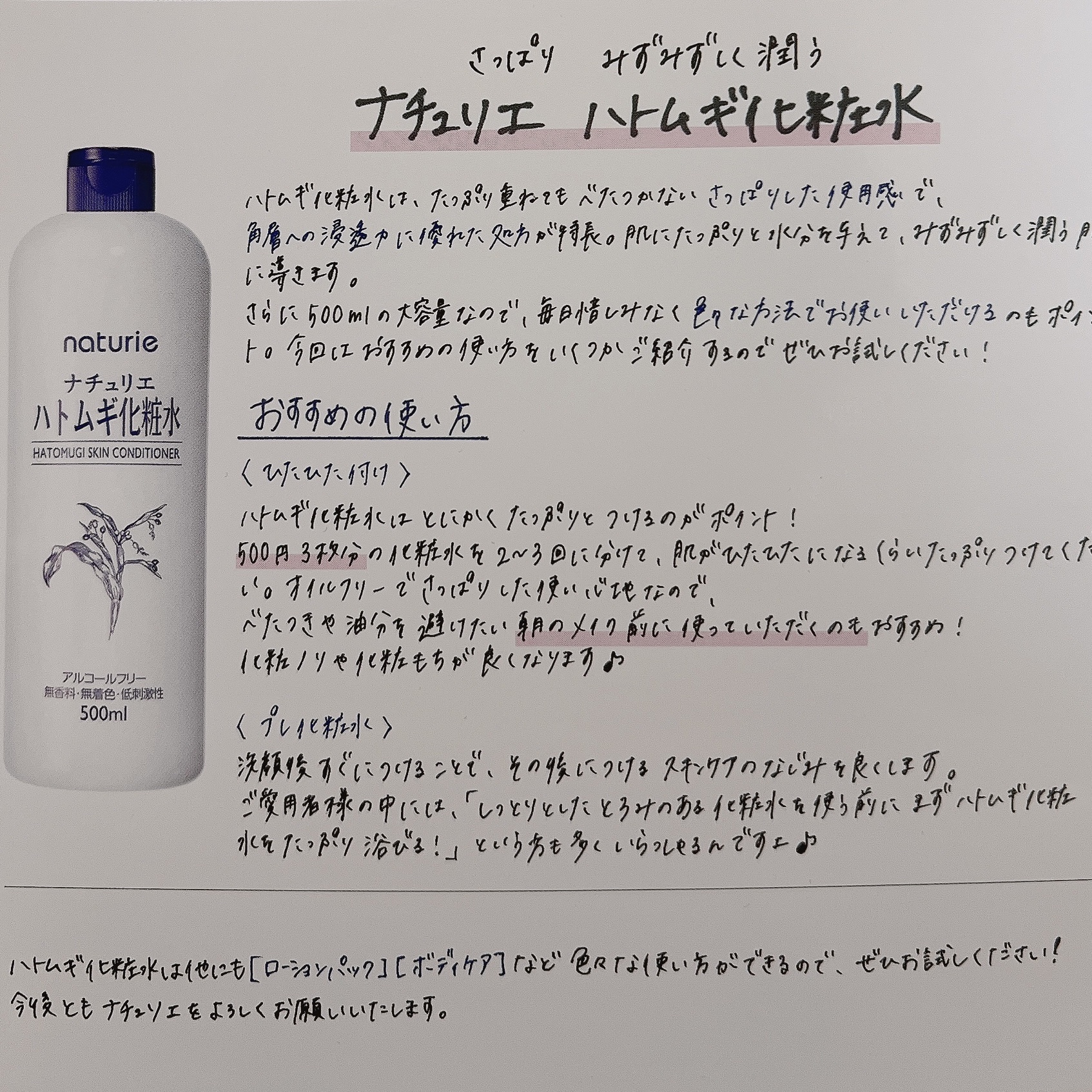 - èã«ãããããäžããŠã¹ãã³ã³ã³ãã£ã·ã§ã³ãæŽããã倩ç¶ä¿æ¹¿æåããã ã®ãšãã¹é åã®åç²§æ°Žã§ãã ã¿ãã¿ãããæµžéåã«åªããåŠæ¹ãªã®ã§ãéããã»ã©ããããèã«ãªãã¿ãè§è³ªå±€ãæ°Žåã§æºãããŸãã ãã£ã·ãèã«éãã¥ãããŠãã¹ãã€ããªããã£ã±ãããäœ¿çšæãªã®ã§ãã¹ãã³ã±ã¢ã®ã¯ããã«ãã£ã·ã䜿ã£ãŠãã ããã èãã²ãããããŠãããååã«æ°Žåããªããã ãµã€ã³ã§ãã â åºæ¬ã¯åç²§æ°Žãšã㊠ã¹ãã³ã±ã¢ã®ã¯ããã«ãã£ã·ã䜿ã£ãŠãã ããã 500åç倧ã®éã3åéãã¥ãããã®ãç®å®ã§ãã èãã²ãããããŠãããååã«æ°Žåããªããã ãµã€ã³ã§ãã â ããŒã·ã§ã³ããã¯ã§ããã«ãããã ã³ããã³ããã§ã€ã¹ãã¹ã¯ã«ãã£ã·ãå«ãŸããŠçŽ3åéããã¯ãããšãè§è³ªæ°Žåéãããã«é«ãŸããŸãã â ãã¬åç²§æ°Žãšã㊠æŽé¡åŸããã«ã€ããããšã§ããã®åŸã«ã€ããã¹ãã³ã±ã¢ã®ãªãã¿ãããããŸããâ»è§è³ªå±€ãŸã§ â ããã£ã«ã ã¹ãã€ããªãã®ã§ãæ¯æ¥ã®å ¥æµŽåŸãæ¥å·®ããæµŽã³ãåŸãªã©ã®ããã£ã®ã¹ãã³ã±ã¢ã«ãããããã§ãã