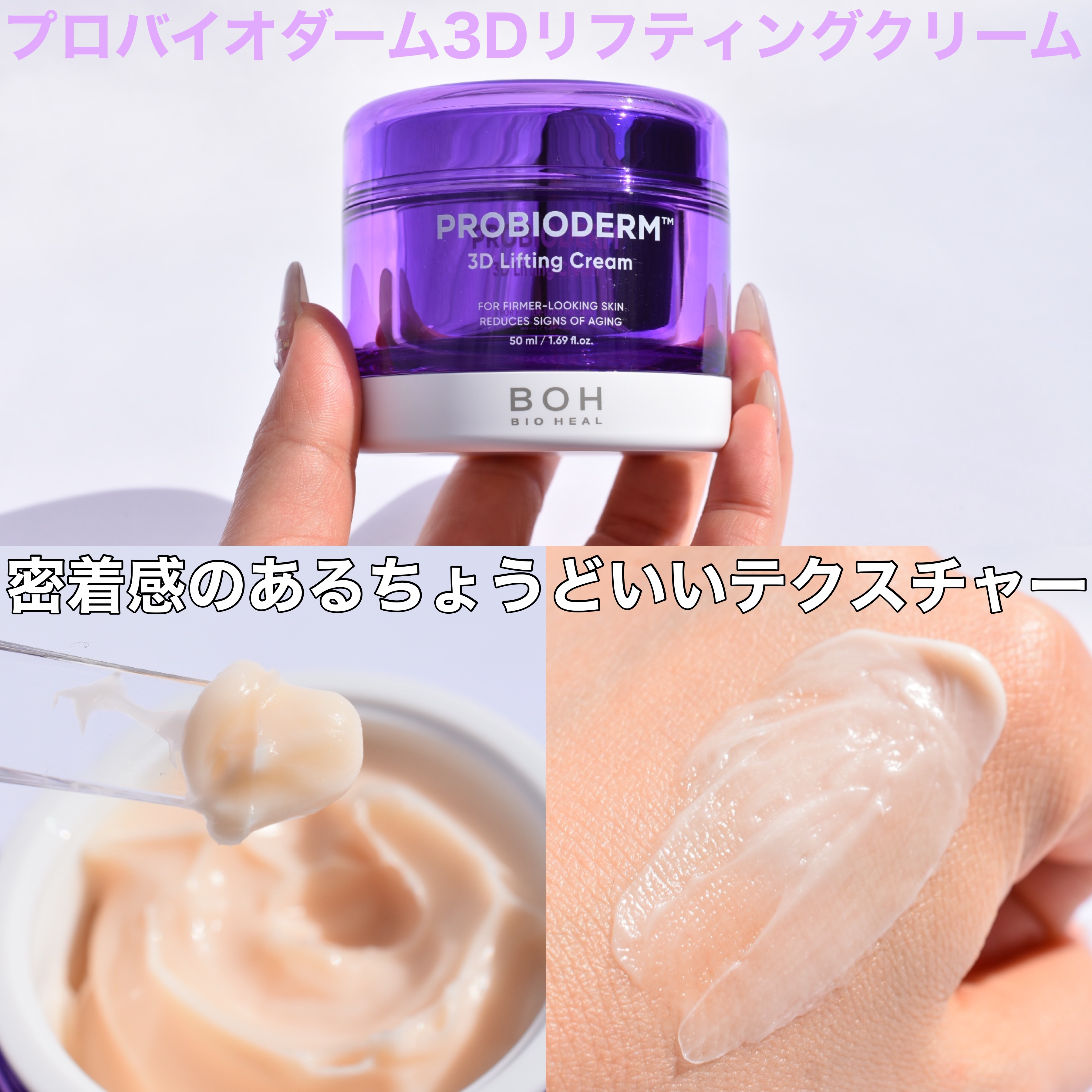 タンタンクリームでおなじみのBIO HEAL BOH✨ 【プロバイオダーム™3Dリフティングクリーム】ハリ活乳酸菌 3Dタンタンクリーム こっくりとしたテクスチャー🫧 でも、なじんでくんだよね〜💕 エイジングケアができるんだって! これ、めっちゃお気に入り〜💕 ジェルっぽくて、みずみずしいテクスチャーなの🫧ハマるよ〜🩷
