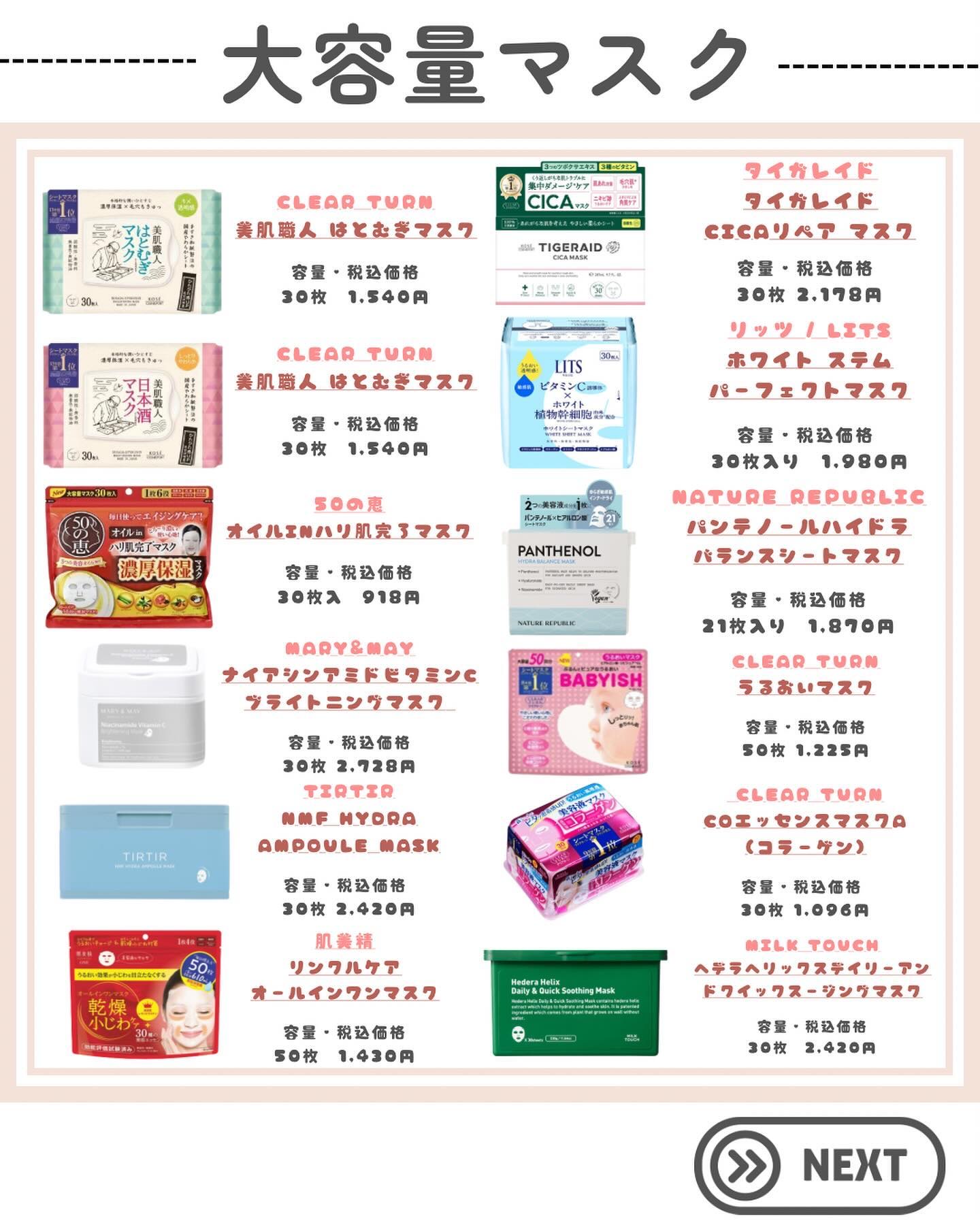 ネイチャーリパブリック ビタペアCデイリーシートマスク | 2,380円 |