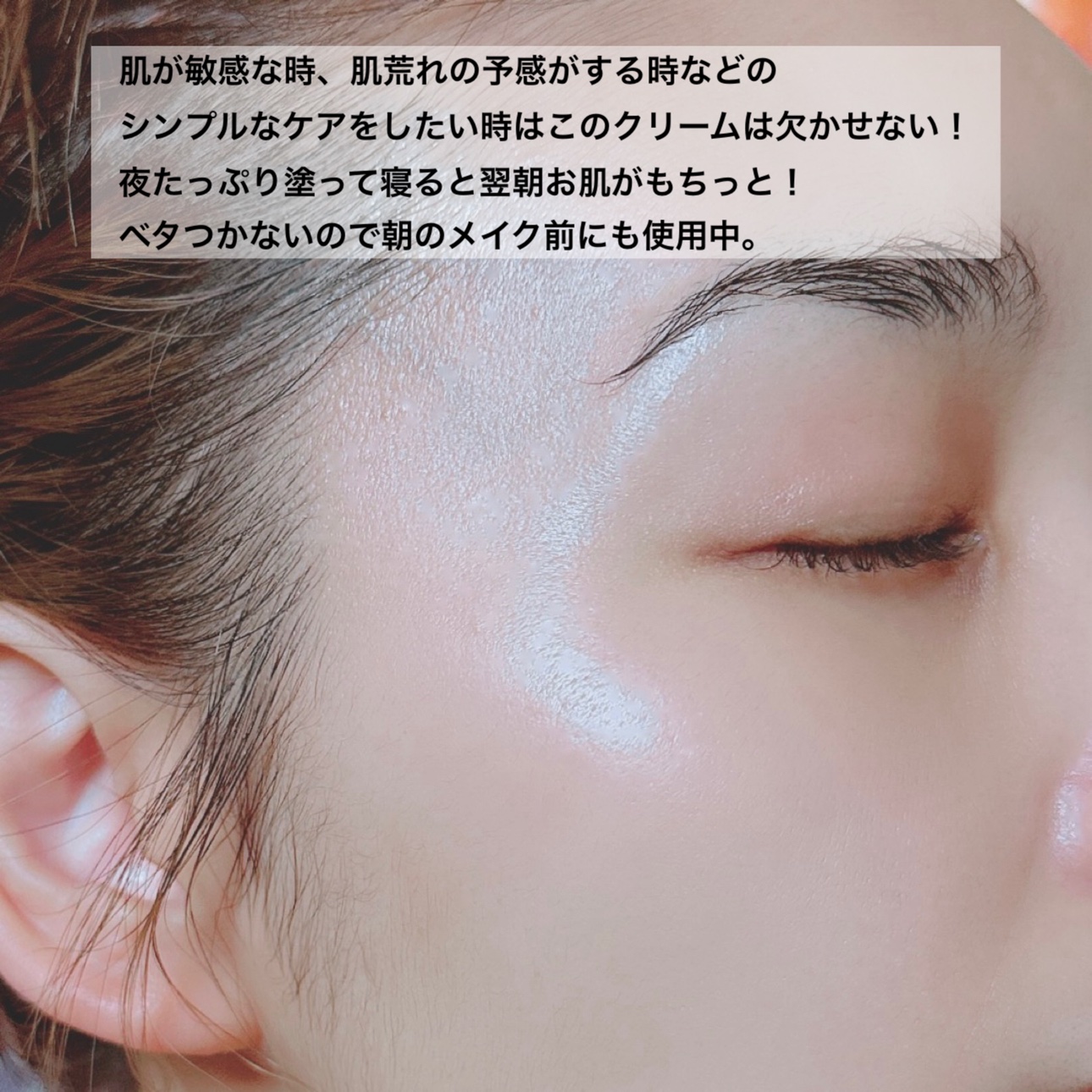 ほんのり黄味のあるクリームは、人工色素ではなく天然の色素とビタミンが多く含まれてるよ💛なめらかなテクスチャーでベタつきなし、なのに濃密で保湿力◎ 水分をたっぷり感じる、ジェルのようなプルプルクリーム。揺らいだ肌にも安心して使える低刺激なクリームだから、トラブルがあるときにこそ使いたくなるアイテム。