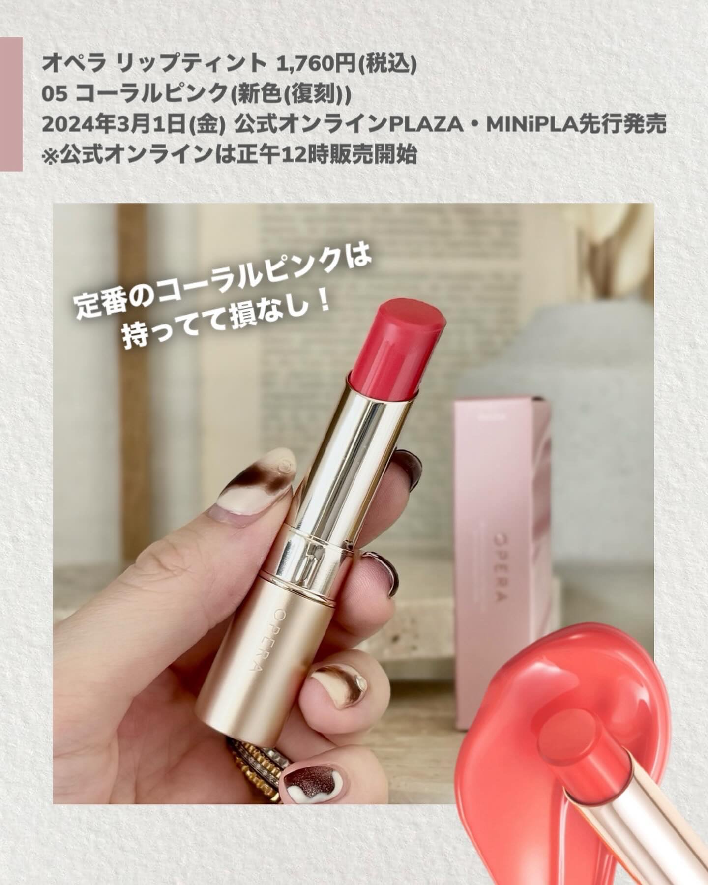 多幸感あふれるクリアなコーラル🩷 特に時間が経つと蛍光感がでてきちゃう。 THEピンクのリップを求めている人にピッタリ! ティッシュオフしても若干色は残ってる! おすすめの塗り方は、いつもよりも少し濃いめに塗ってから、ティッシュオフ!
