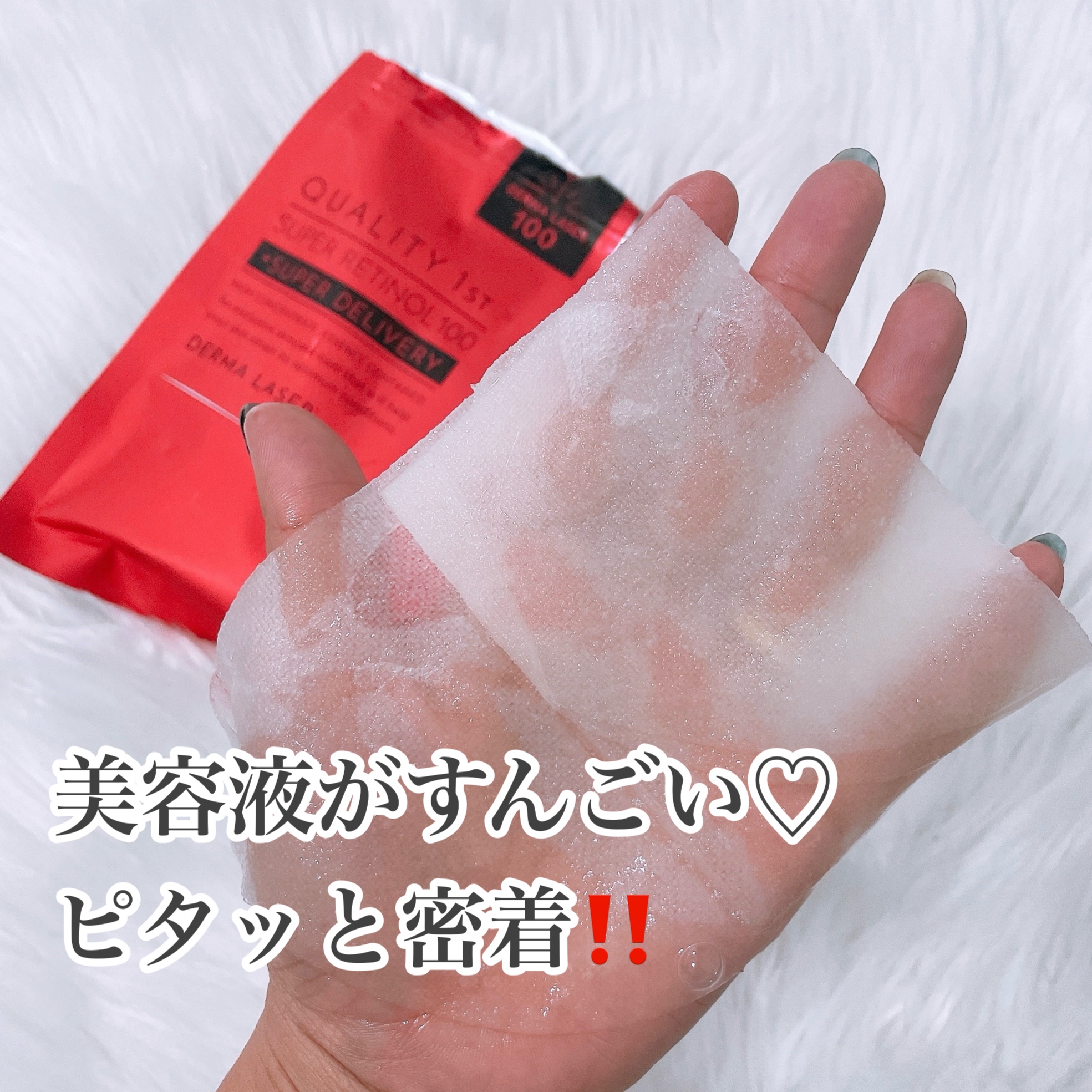 | 美容液がたっぷりひたひたに染み込んでいて、みずみずしくしっとりした使用感です! | 詳細を見る |