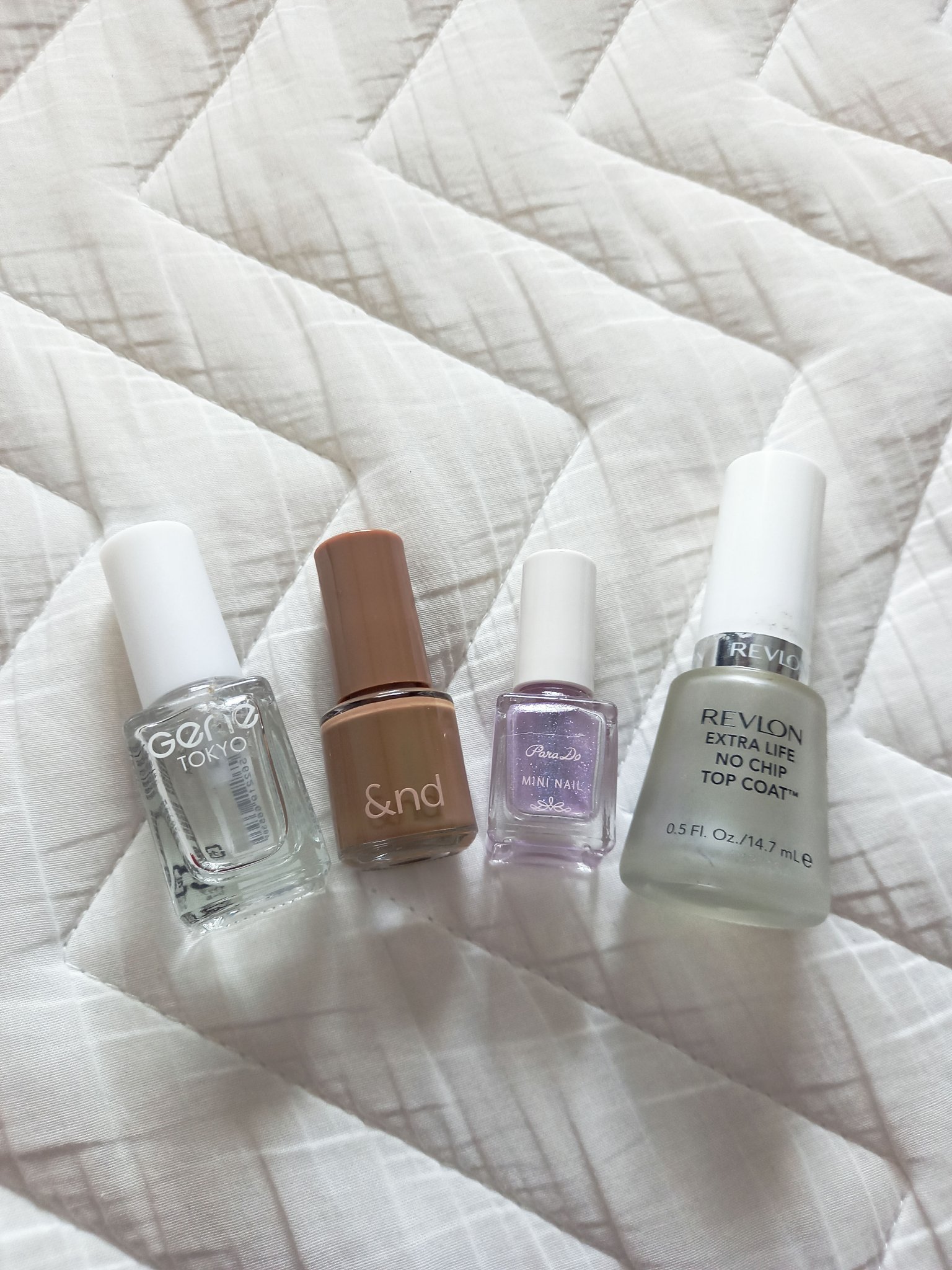 ミルクベリー2度塗り→金霊1度塗り→トップコート1度塗りでなんとなくいい感じになってくれた(当社比)のは絶妙なベージュがかったピンクと大粒金ラメのおかげです。 金霊🌙ほんとにかわいいです 今から100本ストックしておきたい… セリアの速乾トップコートも本当に速乾で最高!俺達のセリア!サラっとしたテクスチャーなので塗りやすいです👌