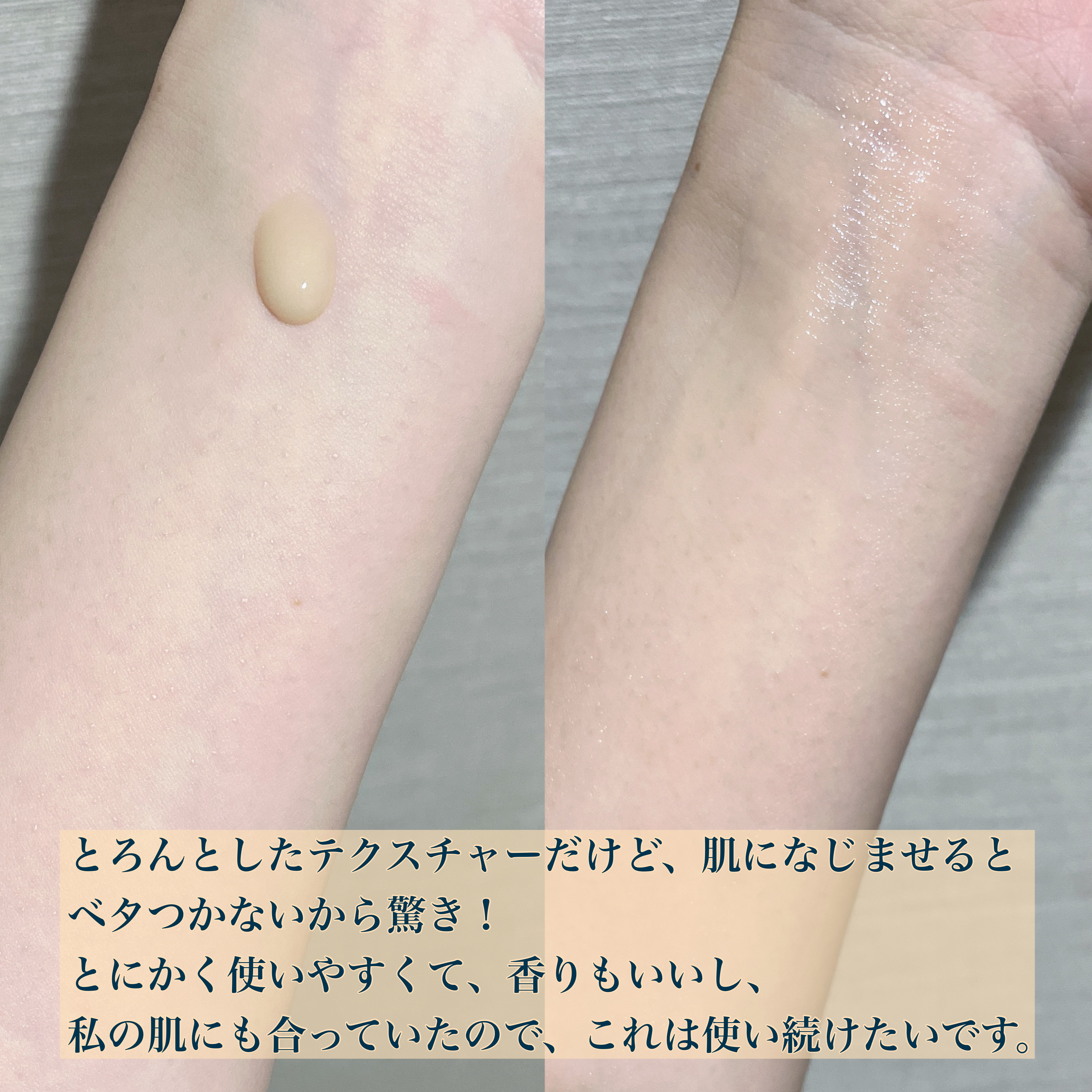 | テクスチャーは乳液のような水分たっぷり✨ 伸びが良くすーっと馴染み ベタつきがなくしっとりするので 軽い使い心地で使いやすいです🙌 | 詳細を見る | |