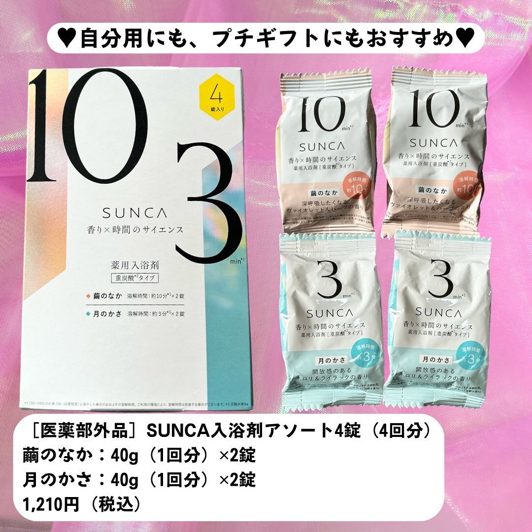 ![SUNCA [医薬部外品] SUNCA 入浴剤 アソート](https://cloudflare.lipscosme.com/image/ece503839947394ce36cca89-1703717496.png?auto=avif%2Cwebp&fio=1&orient=1&width=430)