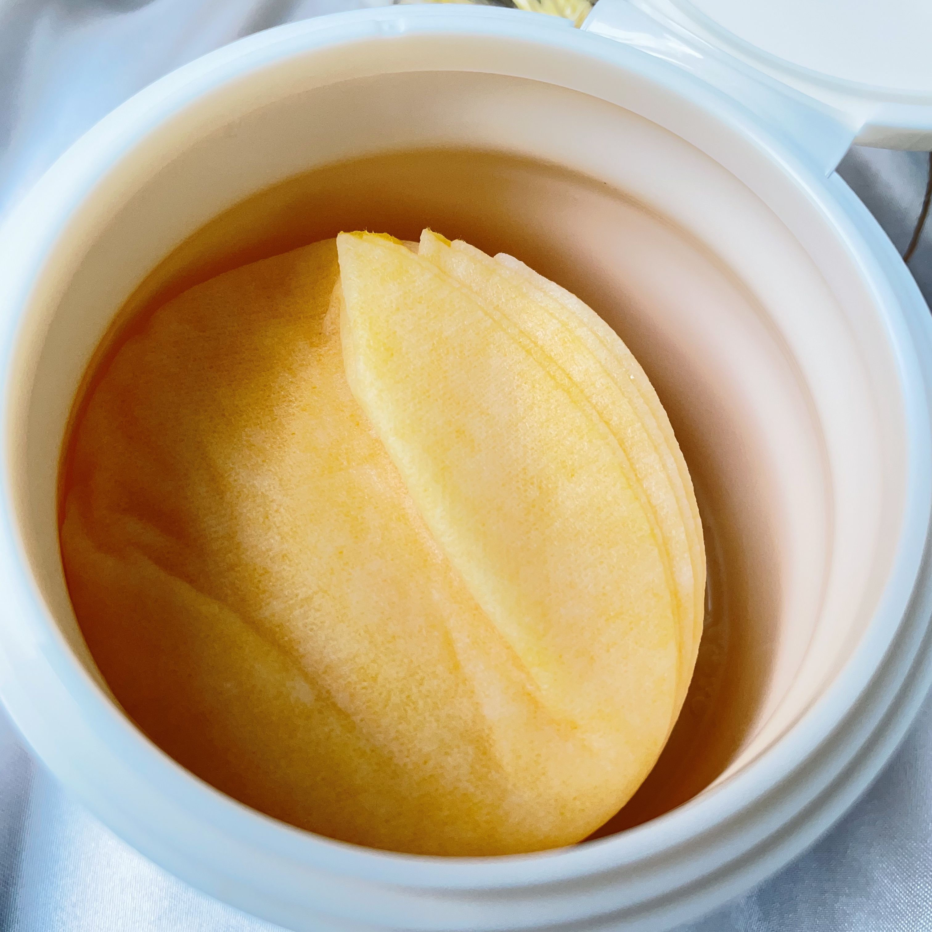 化粧水タイプのフェイスマスクでベタつきはなく、さっぱりめな感じなので朝のメイク前にも◎ 厚めのシートで肌あたりがよく、剥がれにくいのもよかった! 美容液もたっぷり入ってるので、パック後は全身の保湿ケアにも使ったよ🫶🏻 目の周りが小さめに作られてるんだけど、目頭を押さえて引っ張ると目元にピタッと密着するのでおすすめ♡ 7枚入りは440円というプチプラなので気になる方はぜひチェックしてみてね🥳💕