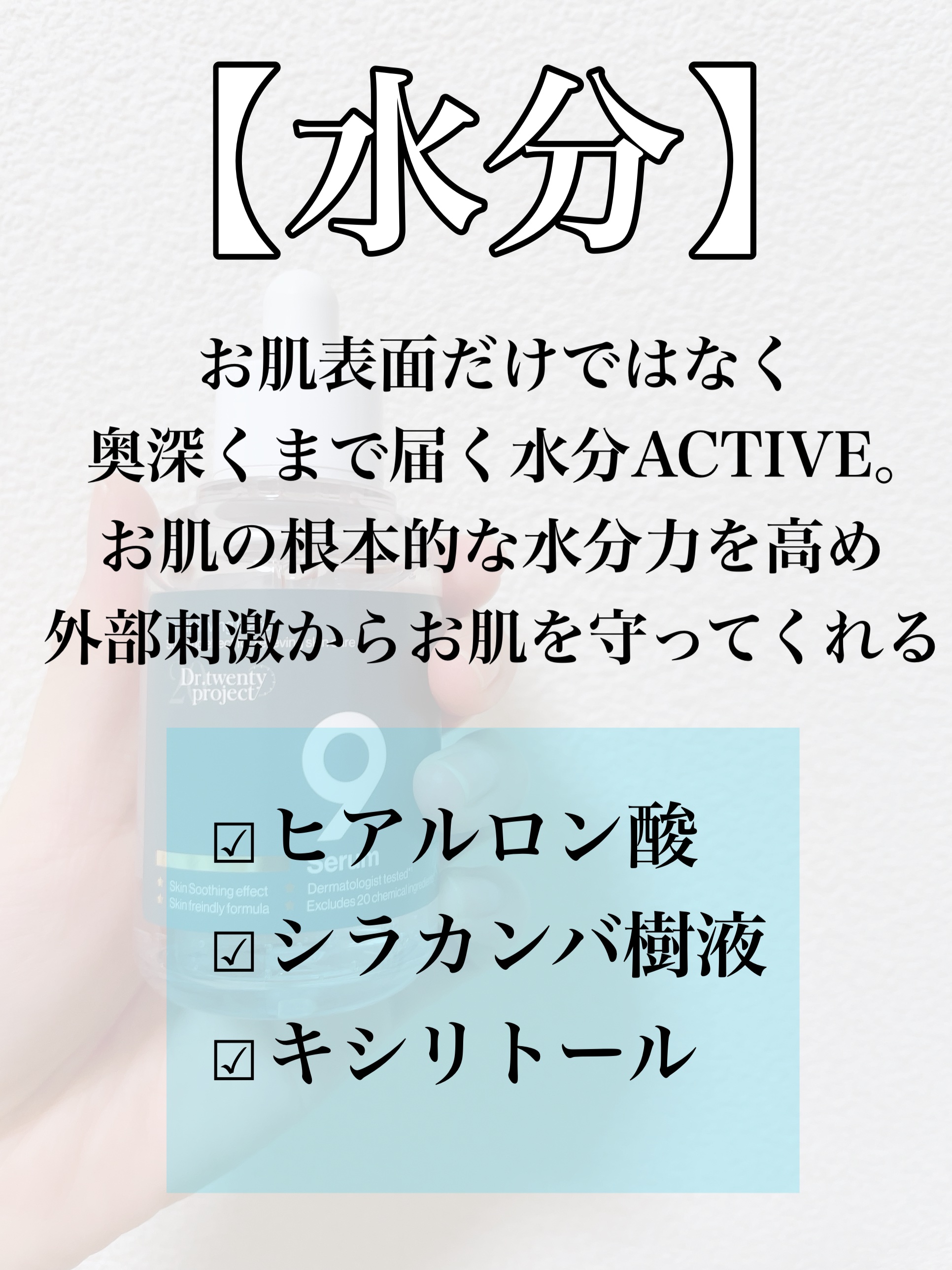 🤍Dr.twentyprojectナインセラム50mlDr.twentyproject様より提供頂きました🙇♀️9種類のActive成分で、9日間使用で肌が変わると言われているセラム✨️☑️水分ACTIVE(ヒアルロン酸、シラカンバ液、キシ...