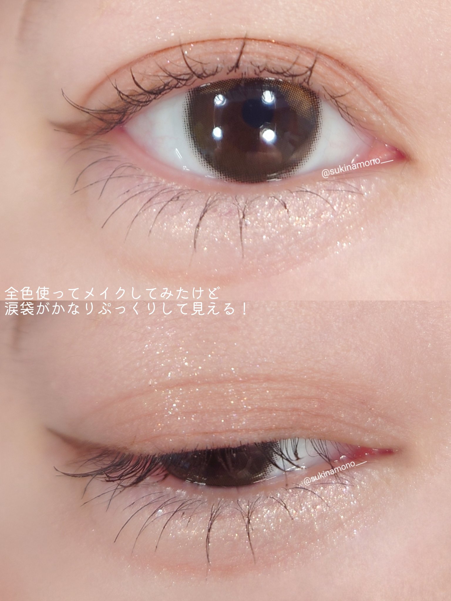 涙袋がかんたんに爆誕 ふつうの涙袋パレットではもの足りない人におすすめです🙌🏻 今までのプランぷくシリーズよりもパール・ラメ感強めで、発色も濃くなっていて涙袋ががっつり盛れました!! ニュートラルな色味なのでどんな人にも使いやすいと思います!