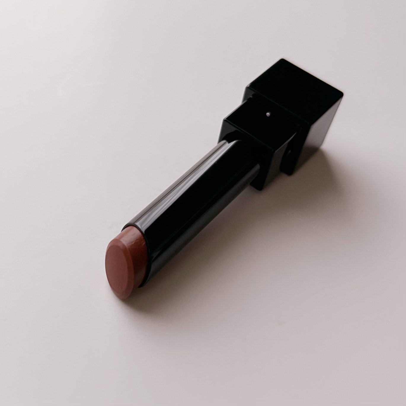 かぼちゃ色と闇夜の影色を重ね合わせたスモーキーパンプキン オレンジを感じるブラウン 白みも少しありベージュのような馴染みやすさもあり 唇にのせてみると気にならなかったです