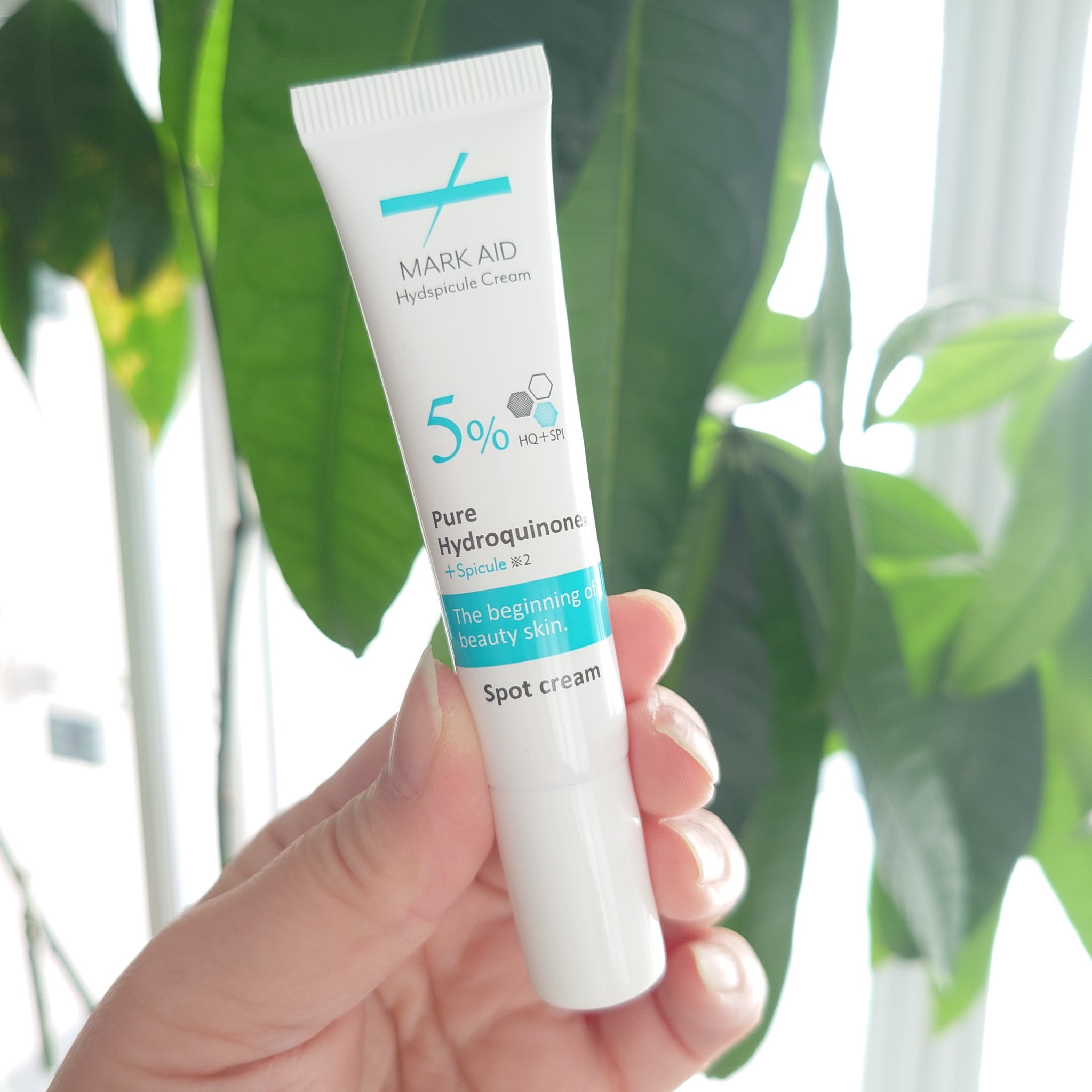純ハイドロキノン(整肌成分)5%配合の天然白針スピキュール(整肌成分)クリーム✨ シミやソバカスなど気になるか所に指や綿棒でピンポイント使いするアイテムです。 少量ずつ出しやすいテクスチャーで、タレにくいので、狙ったところ塗りやすかったです😊
