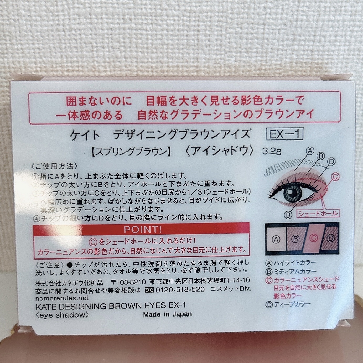 深み&透明感のあるヌーディピンクブラウン KATEのアイシャドウの中でも特に好きなデザイニングブラウンアイズシリーズ。 このパレットは、深みもありつつ重くなりすぎないピンクブラウンが作れる優秀パレット🎨 どのカラーも使いやすい配色になっているので、気になる方は廃盤・店頭から無くなる前にチェック&ゲットしてね💁♀️