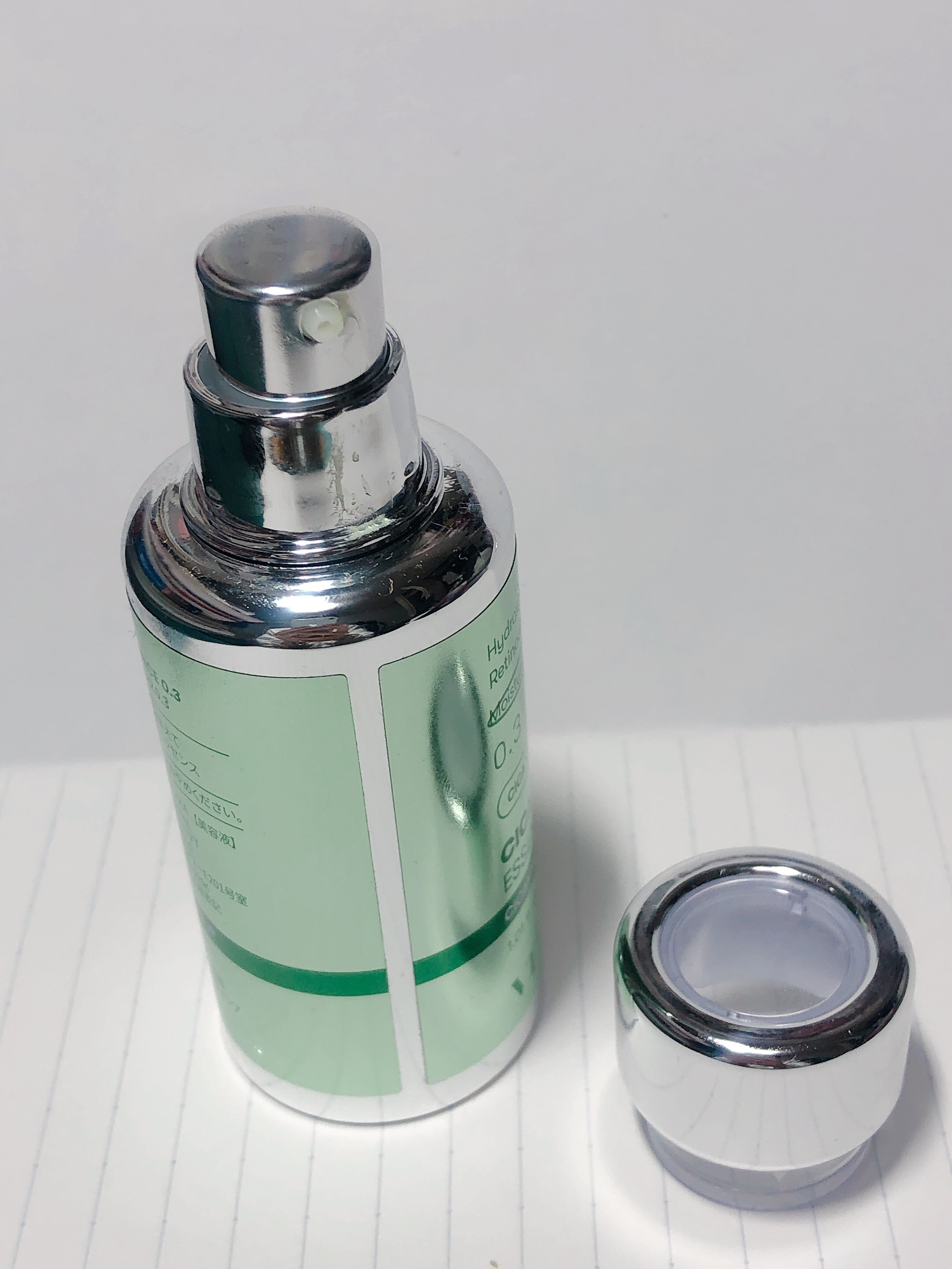 - <30ml> 水、BG、水添ポリ(C6-14オレフィン)、ジメチルイソソルバイド、1,2-ヘキサンジオール、ナイアシンアミド、エチルヘキサン酸セチル、テトラエチルヘキサン酸ペンタエリスリチル、ステアリン酸グリセリル、ジステアリン酸ポリグリセリル-3メチルグルコース、ベヘニルアルコール、水添野菜油、ジメチコン、ステアリン酸ポリグリセリル-6、レチノイン酸ヒドロキシピナコロン、ステアリン酸、セテアリルアルコール、ポリアクリレート-13、カルボマー、ベタイン、パンテノール、トロメタミン、ポリイソブテン、エチルヘキシルグリセリン、ツボクサエキス、ベヘン酸ポリグリセリル-6、アデノシン、ヒアルロン酸Na、アラントイン、ポリソルベート20、ワサビノキ種子エキス、グルコノラクトン、バクチオール、カプリロイルサリチル酸、イソステアリン酸ソルビタン、ヒドロキシステアリン酸、セラミドNP、トコフェロール、アスコルビン酸、ペンチレングリコール、レチノール、レシチン、カプリリルグリコール、リン酸Na、トレハロース、BHT、アセチルヘキサペプチド-8、プロポリスエキス、マデカッソシド、アシアチコシド、アシアチン酸、マデカシン酸、BHA、合成ヒト遺伝子組換オリゴペプチド-1、合成ヒト遺伝子組換ポリペプチド-1、EDTA-2Na、香料