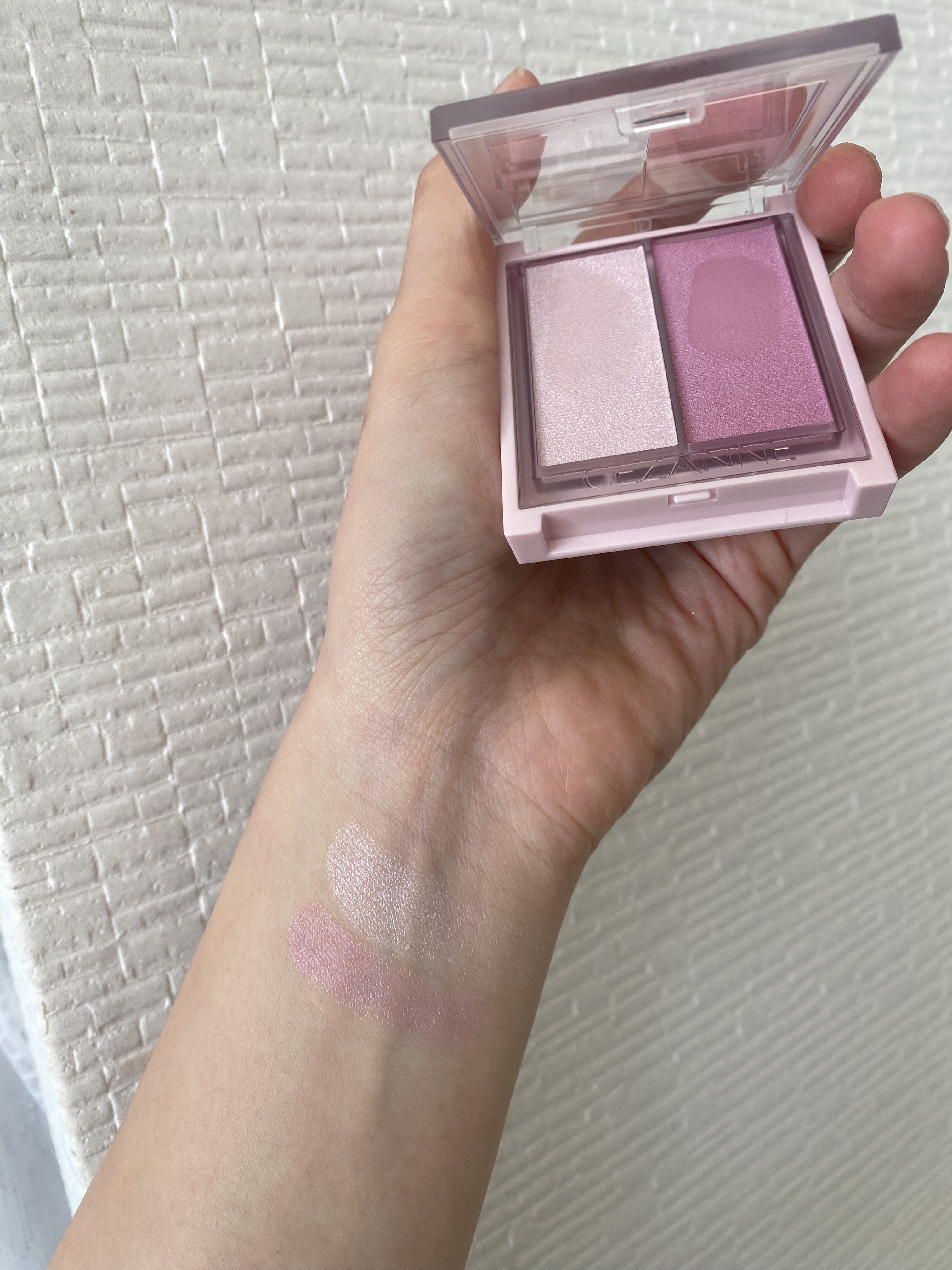 クリームチークはポーチに入れることが多くて パウダーに比べて割れる心配が少ないし指で塗れるからブラシが無くても良い所が持ち歩きに向いてるなと思います 密着力が高い所や粉っぽく見えにくいのも好きなポイントです♡ ハイライトはベージュ系の中にピンクのパールも入っていて ほんのり血色感が出るようなカラーです