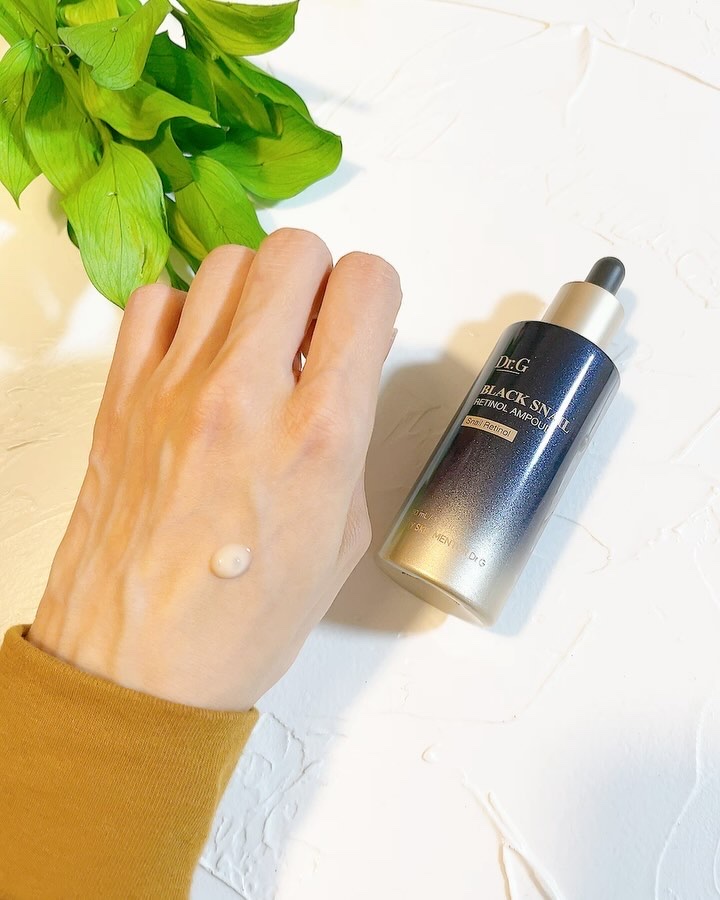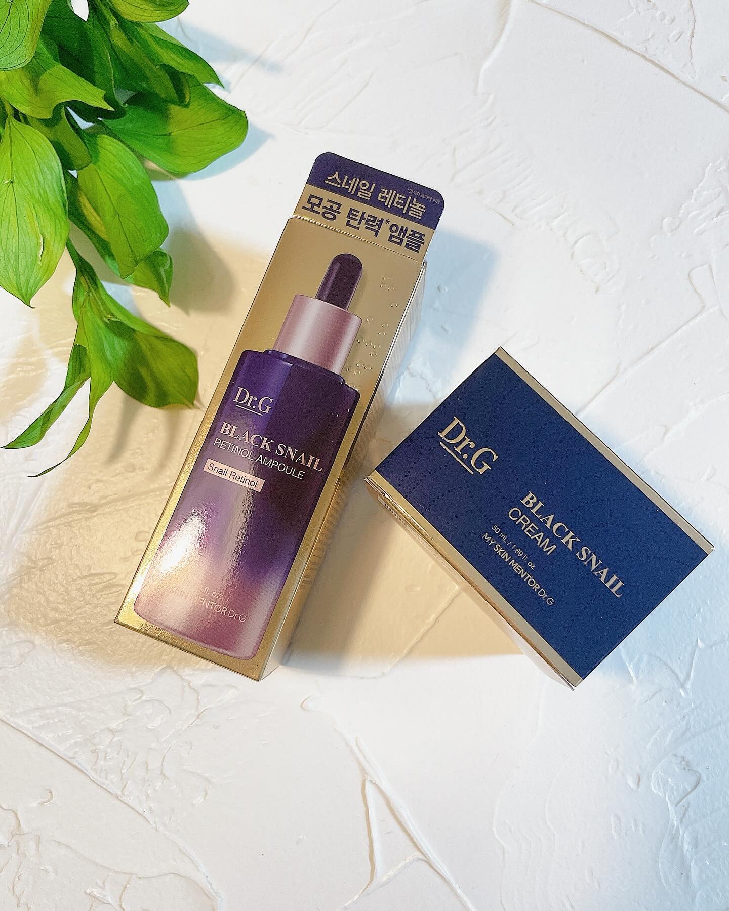 ブラックスネイルと低刺激のレチノールを配合した美容液 とろみがあってミルキーなテクスチャー なめらかにすべるように伸びて気持ちいい使用感で好き ブラックスネイル20%配合クリーム もっちりとした弾力を感じるテクスチャー なめらかに伸びてべたつかない Dr.Gが開発した独自成分のブラックスネイルレチノールは刺激が少なく効果的◎ アトピーもちの敏感肌、乾燥肌だけどトラブルなく使えてるよ♪