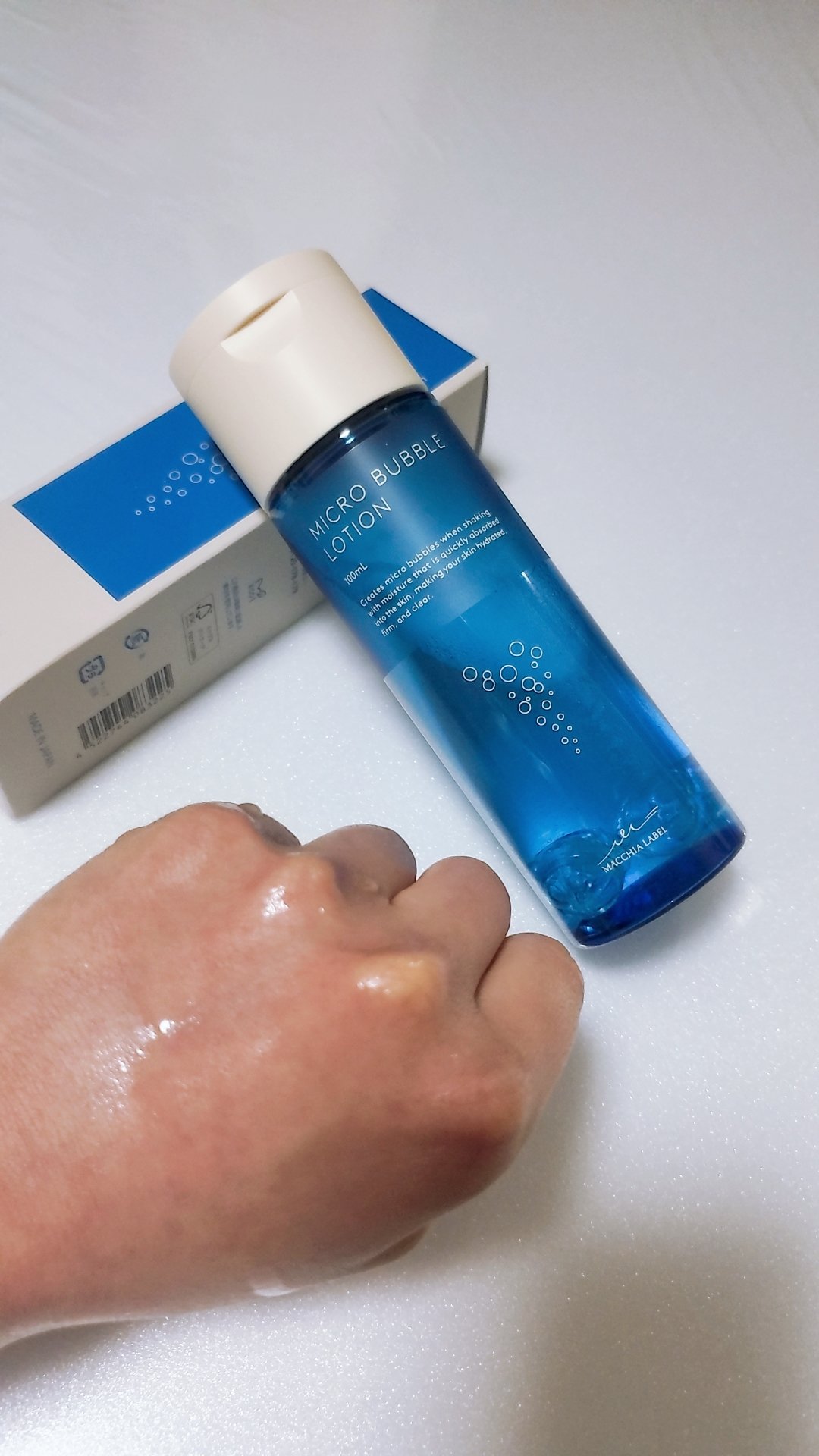こちらの振ってファインバブルを発生させる日本初の化粧水。中にボールが入ってるのですが、振るとこのボールが微細な泡を発生させるみたいです。 少しとろみのあるテクスチャですがさらっと馴染みがよくて使い心地がいいです◎ 細かな泡とブルーのボトルで見た目も綺麗なところもお気に入りです◎