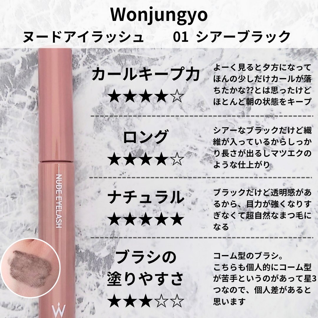 ウォンジョンヨのマスカラ2種記録📝メインはアイドールスリムマスカラロングのレビューです✍🏻個人的に、単品よりヌードアイラッシュと一緒のほうがわかりやすかったので、2点まとめて撮影しました。アイドールの使い方は、公式曰く、単品はもちろん、ヌード...