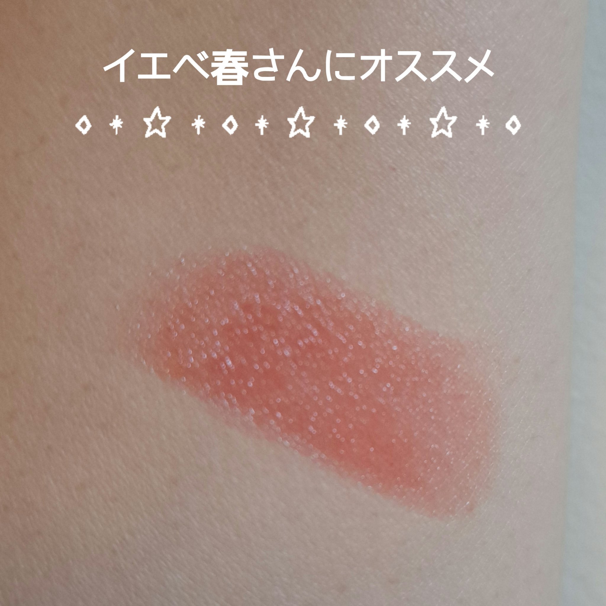 色の種類が多いので、自分に似合う色が見つかるハズ!! バームと言うだけあって、グロスなどより保湿は長持ちする。 ヌガーサンド とても秋冬っぽい色味で落ち着いてつけられる。 ディアアップル ヌガーサンドが思ったより落ち着きすぎていたので、こちらを購入したのですが、よりイエベ春っぽい色味で、顔色も明るく見えます。