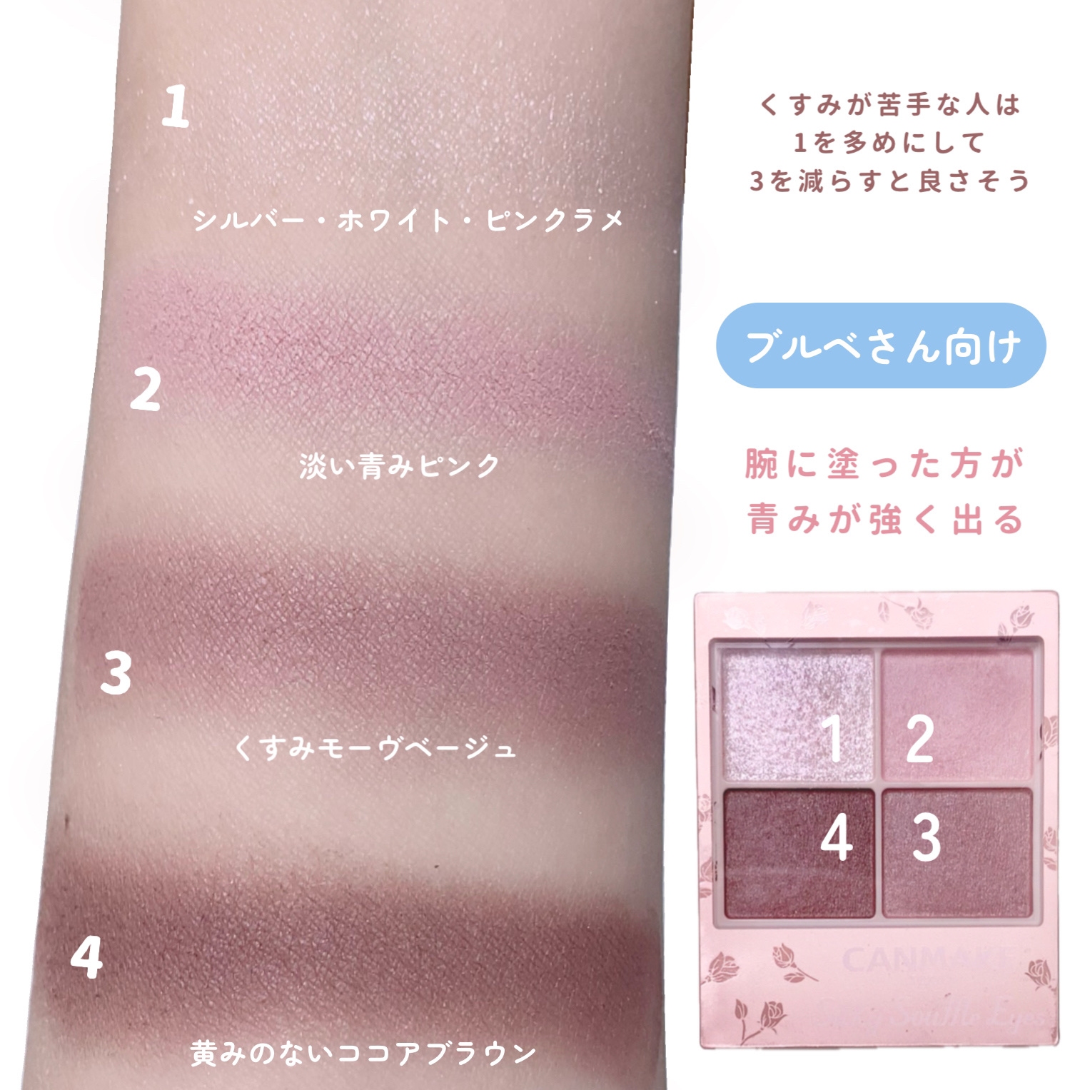アイシャドウをどう塗ったらいいかわからない人、 何色も重ねると目元がくすんでしまう人におすすめです! 普通のアイメイクに飽きてしまった人や、 離れ目を解消したい人、丸目になりたい人など 目の形に悩みがある人におすすめです! 多色パレットをどう使ったらいいかわからない人、 グラデーションを楽しみたい人におすすめです!